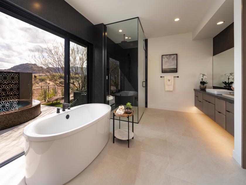 Secluded primary bedroom suites with spa-like bathrooms
