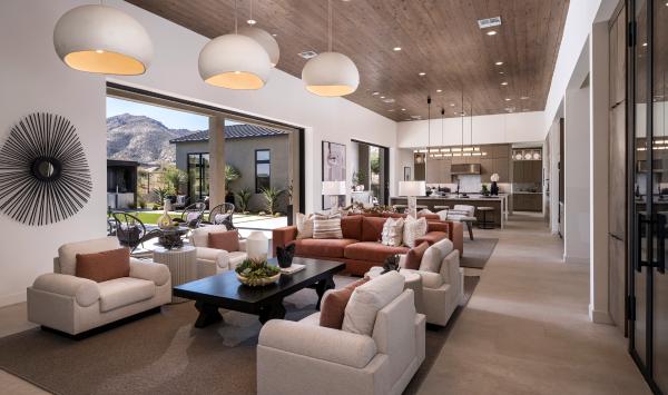 Spacious great rooms with elevated ceiling heights, beautiful fireplaces, and pocket multi-slide doors