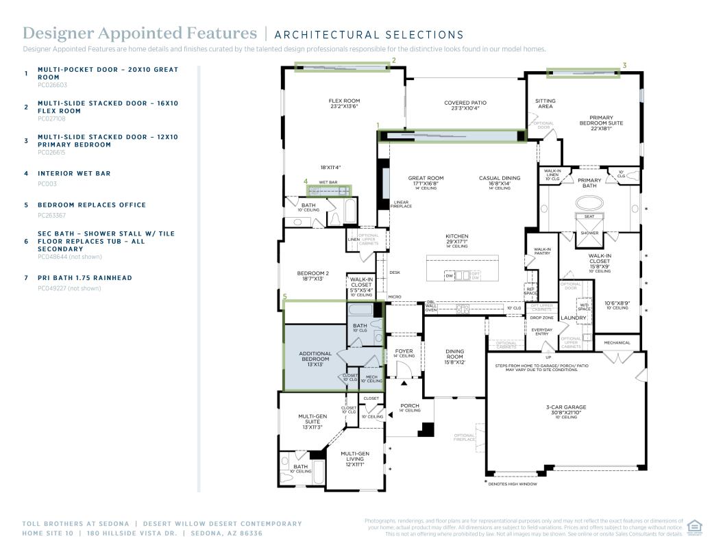 Award-winning home design showcasing seamless indoor-outdoor living throughout. The open concept great room, kitchen and breakfast area feature soaring 14’ ceilings and flow seamlessly to an oversized covered patio with sweeping mountain views. The well-appointed kitchen is complete with a large center island with breakfast bar, ample counter and cabinet space, huge walk-in pantry, and direct access to the dining room. The spacious primary suite features a 12’multi-slide pocket door and spa-like bath with dual vanities, a free-standing soaking tub, luxe walk-in shower, and enormous walk-in closet. Additional highlights include a formal dining room off the foyer, two secondary bedrooms, each with a walk-in closet and en suite bathroom, a large bonus room with 16’ multi-slide pocket door and added wet bar, convenient drop zone, and ample laundry room with storage.