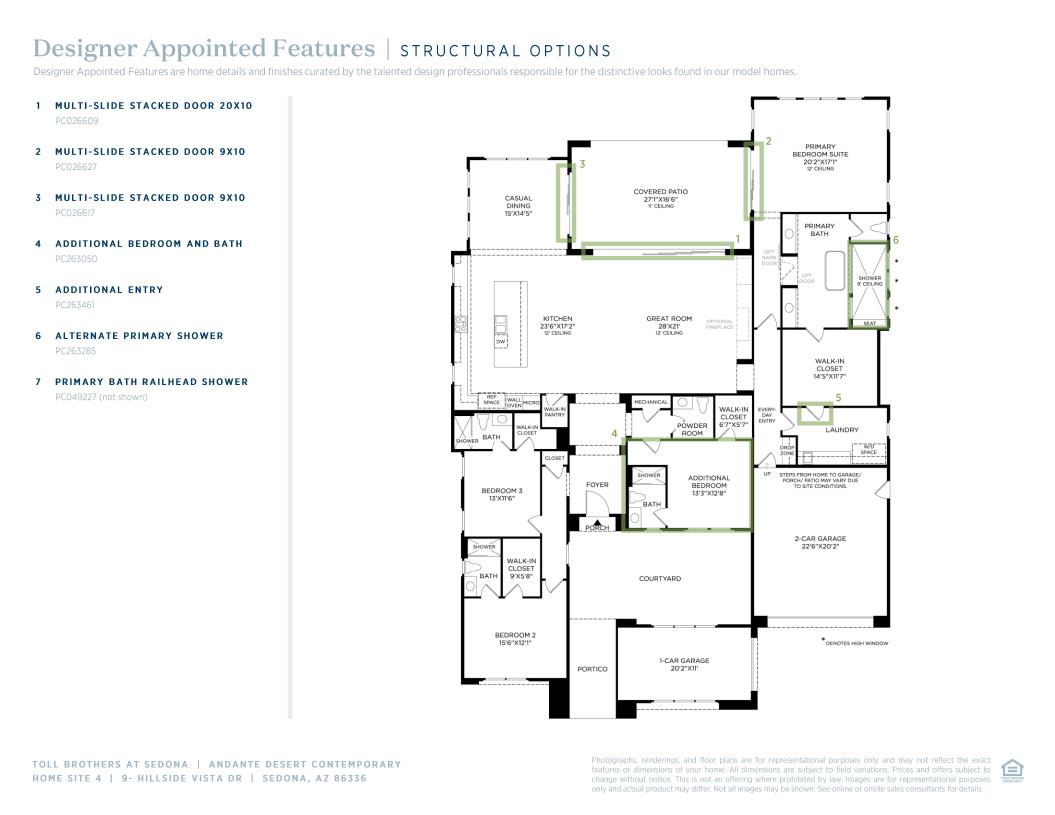 Personalize your finishes at the Toll Brothers Design Studio including flooring, cabinetry, countertops, and more. The open, elegant Andante design puts luxury living at the heart of home. The expansive front courtyard leads to the open-concept great room, dining room, and casual dining area with desirable access to the extended covered patio. The well-designed kitchen is complete with a large center island with breakfast bar, plenty of counter and cabinet space, and walk-in pantry. Highlighting the serene primary bedroom suite are an ample walk-in closet and stunning primary bath with large soaking tub, and luxe shower with seat. Secondary bedrooms feature walk-in closets and private bath.