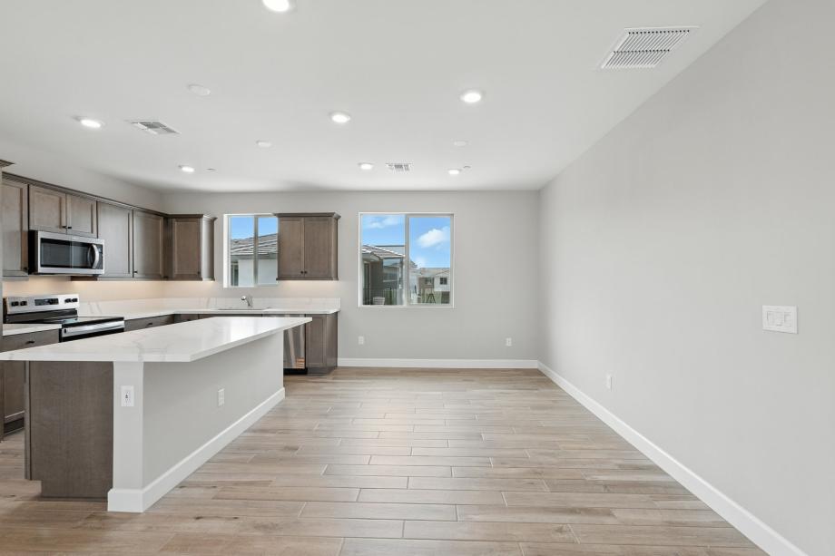 Residence Six’s floor plan offers exceptional open-concept gathering spaces for year-round entertaining. The foyer’s staircase leads up into an expansive great room, casual dining area and well-appointed kitchen complete with an island with breakfast bar, a sizable pantry, and ample cabinet and counter space. Off the great room is a lovely covered deck, perfect for entertaining. The elegant primary bedroom suite features a walk-in closet and a superb primary bath with a dual-sink vanity, a luxe shower, and a private water closet. The relaxing secondary bedroom has a private bath. Additional highlights include an everyday entry with a convenient drop zone, easily accessible laundry, and plentiful storage.