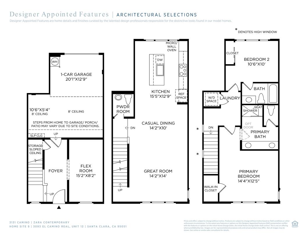 The Zara offers a stylish, three-story layout designed for modern living. Enter through a welcoming foyer that opens onto a spacious flex room, ideal for versatile living options. The heart of the home is on the second floor, featuring an open-concept floor plan that seamlessly connects the kitchen to the great room and a casual dining area. The kitchen is well-appointed with plenty of counter and cabinet space and a center island with a breakfast bar. The third level is highlighted by the serene primary bedroom suite, which includes a sizable walk-in closet and a lush private bath with dual sinks, a luxe shower with seat, and a private water closet. A secondary bedroom offers a private bath and a roomy closet. Additional highlights of the home include a powder room on the main living level, bedroom-level laundry, and ample storage space.