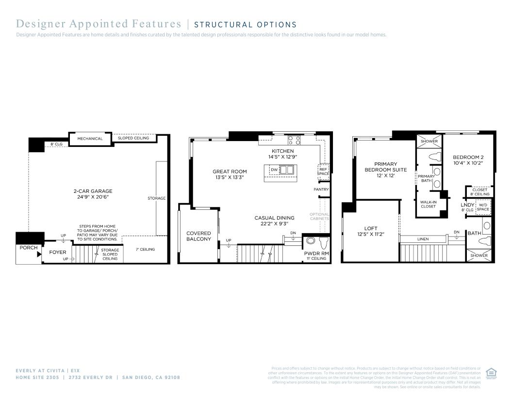 A cozy foyer and staircase offer a welcoming ambience, revealing the EX1's spacious main living area on the second floor. The lovely great room and casual dining area with access to the covered balcony are overlooked by the impressively designed kitchen, enhanced by wraparound counter and cabinet space, a large center island with accompanying breakfast bar, and a sizable pantry. Defining the gorgeous primary bedroom suite is an extensive walk-in closet and serene primary bath with a separate dual-sink vanity area and luxurious shower. Secondary bedrooms are tucked away on the third floor, offering roomy closets and a shared hall bath. Centrally located third-floor laundry, a convenient second-floor powder room, and plenty of additional storage are also featured.