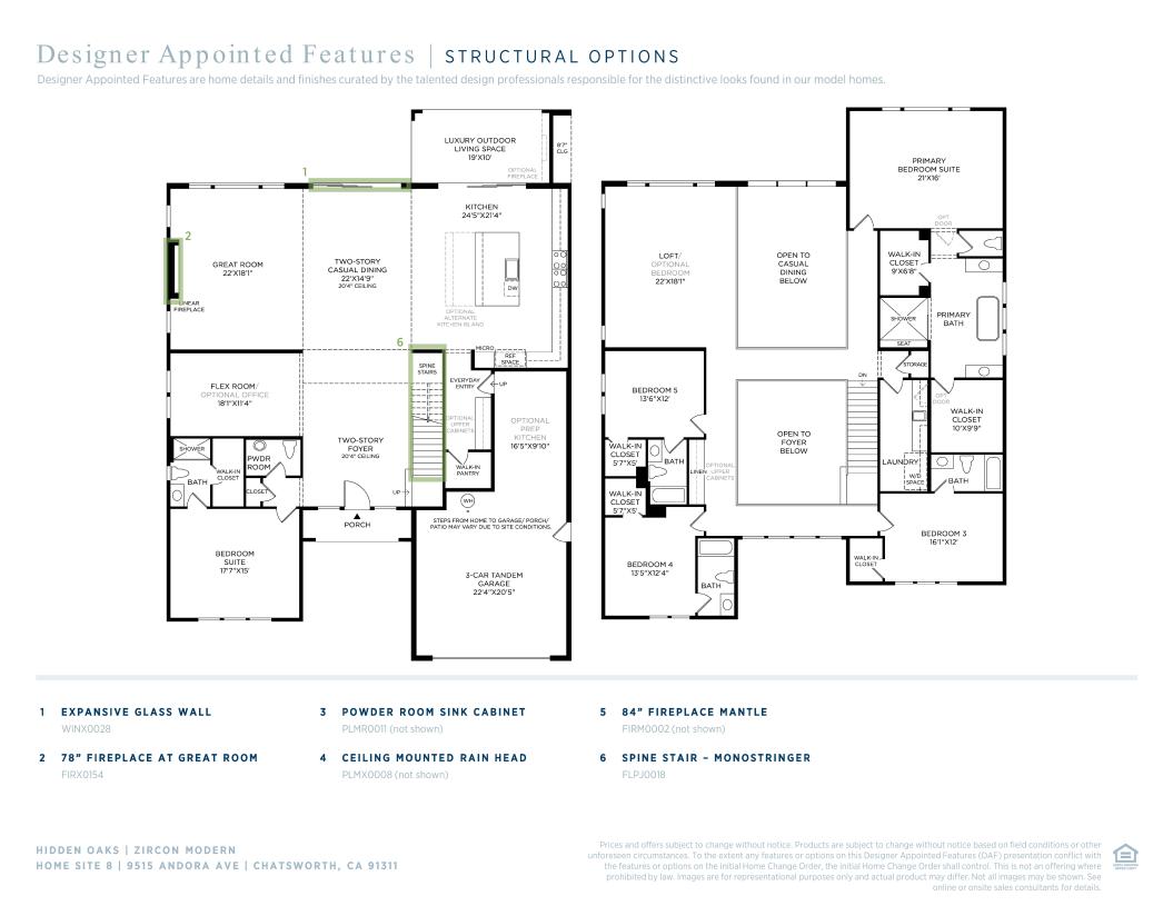 The Zircon is the epitome of luxury with an inviting covered entry that flows into an elegant two-story foyer, presenting views of the stunning great room and two-story casual dining area. The well-designed kitchen is perfect for entertaining, complete with a large center island with breakfast bar and a large walk-in pantry while offering convenient access to a spacious outdoor living space. The serene primary bedroom suite is secluded on the second floor, featuring dual walk-in closets and a spa-like primary bath with dual vanities, a luxe shower with seat, and a private water closet. A generous loft is central to the secondary bedrooms that offer walk-in closets and private full baths. A first-floor bedroom suite with a private bath and walk-in closet can be found off the foyer. Additional features of the Zircon include a versatile flex room off the foyer, a powder room, second-floor laundry, an everyday entry, and ample additional storage.