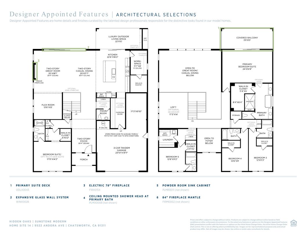 The Sunstone's welcoming covered entry opens onto a soaring two-story foyer and stunning great room, with views of the luxurious outdoor living space beyond. Overlooking a bright, casual dining area and an expansive glass wall at the great room. The expertly designed kitchen features a large center island with a breakfast bar, a walk-in pantry, a separate workspace, and ample counter and cabinet space. Large flex space for office, formal dining, or add doors for media screening room. Home includes a primary suite deck with private hillside exposures.