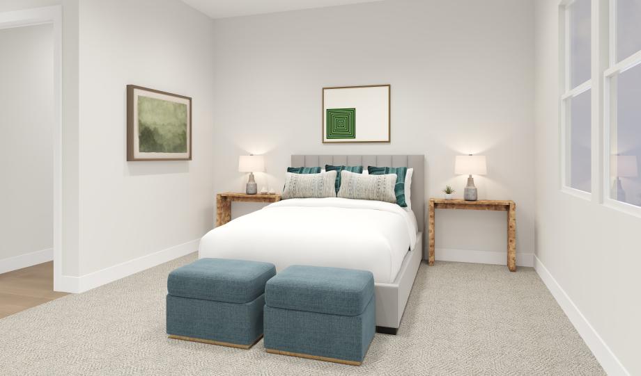 The Mulholland offers a flexible floor plan ideal for modern, multi-generational living. The welcoming foyer opens to a private multi-gen suite with its own living area and full bath with shower. Upstairs, the great room and casual dining area form the heart of the home. Steps away, the kitchen features a central island, L-shaped counter, and pantry—ideal for everyday use or entertaining. Sliding doors open to a luxury outdoor living space, perfect for fresh-air dining or relaxation. The primary bedroom offers a generous walk-in closet and private bath with a dual-sink vanity, a spacious shower, and a private water closet. A secondary bedroom has access to a full hall bath with a soaking tub. A second-floor laundry space adds everyday convenience to the home.
