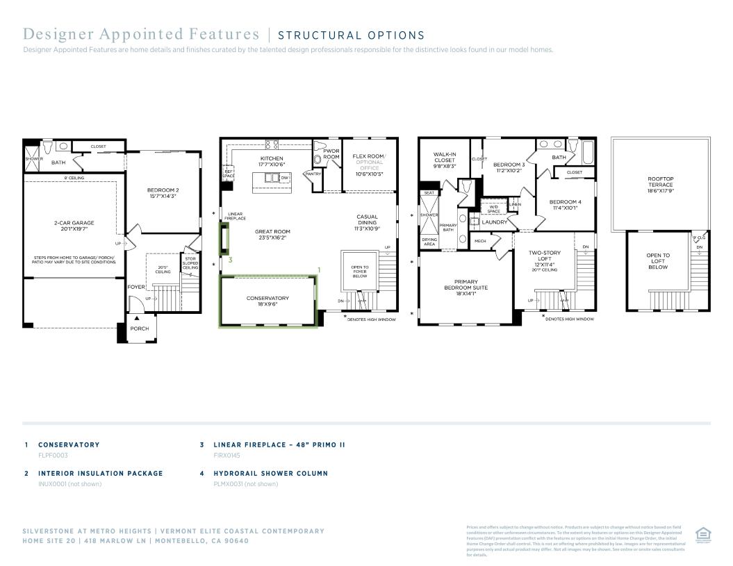 The stylish Vermont Elite opens with a soaring foyer and stairs leading to the open-concept main living level. The elegant great room is central to a bright, casual dining area and a well-equipped kitchen with wraparound counters and cabinets and a center island with a breakfast bar. Dine al fresco or relax on the covered balcony. The third floor reveals a soaring two-story loft and two secondary bedrooms that share a full bath with a separate dual-sink vanity area. The beautiful primary bedroom is enhanced by a walk-in closet and a spa-like bath with a luxurious shower, a dual-sink vanity, and a private water closet. Additional highlights include a two-story loft for added living space and a laundry room conveniently located on the bedroom level. The fourth floor is home to a chic rooftop terrace ideal for entertaining. Other desirable features include a secluded secondary bedroom and full bath on the first floor, a powder room on the second floor, a versatile flex room, and convenient bedroom-level laundry.