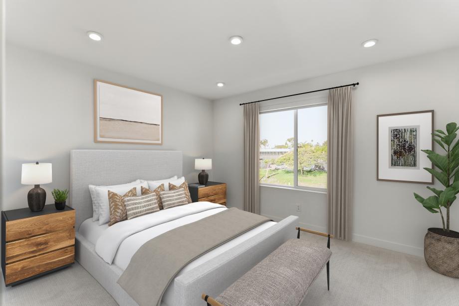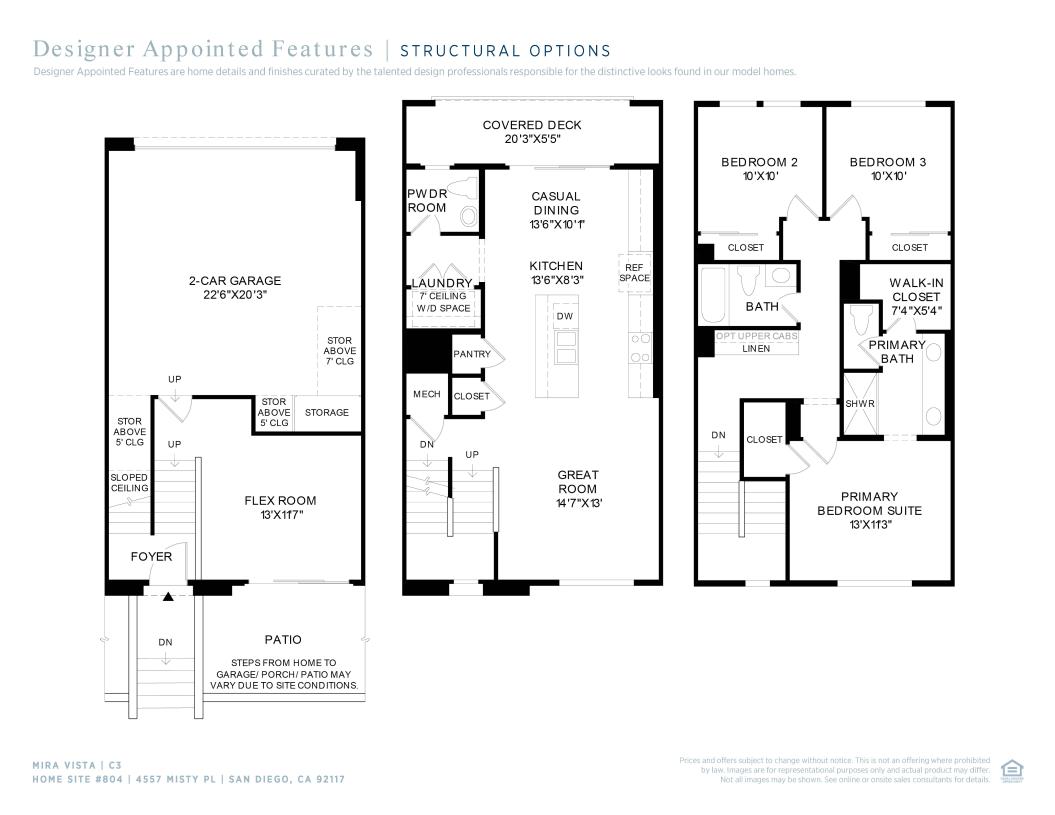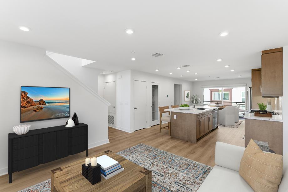 The C3 floor plan at Mira Vista, a new community located less than a mile from Mission Bay Beach in San Diego, offers luxurious coastal living in a 3-story attached condominium. This spacious home features 3 bedrooms and also features a downstairs space that's perfect for a home office, studio, or guest room. The layout also includes a generously sized outdoor patio, offering a great space for relaxation or entertaining guests. The expansive upstairs kitchen and great room in the secondary bedrooms provide ample room for comfort. This completed home showcases beautiful upgrades, including luxury wood vinyl flooring, KitchenAid appliances with a refrigerator, and a convenient side-by-side laundry space featuring a Whirlpool washer and dryer. Mira Vista's prime location puts you within vibrant neighborhoods like Little Italy, downtown San Diego, and La Jolla, along with convenient access to shopping and dining and the airport. This is coast living at its finest, blending luxury, convenience, and the beauty of San Diego's coastline.