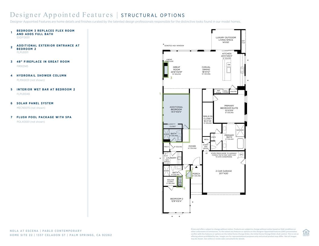 This Pablo Contemporary offers a harmonious blend of luxury and style within its single-story layout. A spacious foyer flows past a third bedroom and full hall bath and into the open-concept great room that connects to a casual dining area and a luxury outdoor living space. The heart of the home is the expertly crafted kitchen, boasting ample counter and cabinet space as well as a central island that makes entertaining easy. The secluded primary bedroom suite showcases an expansive walk-in closet and a spa-like private bath complete with dual vanities, a large shower, a freestanding tub, and a private water closet. A sizable secondary bedroom is located off the foyer, featuring a walk-in closet and a full bath. Centrally located laundry, a powder room with linen storage, and a convenient everyday entry round out this thoughtfully designed home.