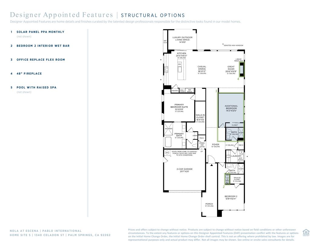 The Pablo offers a harmonious blend of luxury and style within its single-story layout. A spacious foyer flows past a large front office and into the open-concept great room that connects to a casual dining area and a luxury outdoor living space. The heart of the home is the expertly crafted kitchen, boasting ample counter and cabinet space as well as a central island that makes entertaining easy. The secluded primary bedroom suite showcases an expansive walk-in closet and a spa-like private bath complete with dual vanities, a large shower, a freestanding tub, and a private water closet. A sizable secondary bedroom is located off the foyer, with a separate entrance and wet bar, featuring a walk-in closet and a full en-suite bath. Centrally located laundry and a powder room with linen storage. Luxury outdoor living space with golf course views and upgraded pool and spa.