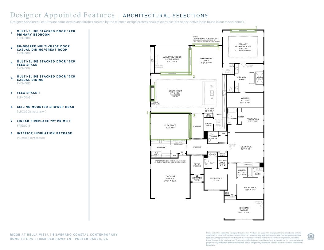 Nestled on a generously sized home site of over 17,000 sq. ft. at the end of a quiet cul-de-sac along the eastern ridge of the community, this Silverado home design offers privacy, space, and sweeping rustic views. This thoughtfully designed home blends luxury with livability. The Silverado's inviting covered entry and welcoming extended foyer flow past the beautiful dining room into the expansive great room and casual dining area with coffered ceilings, with views to the desirable luxury outdoor living space beyond. The well-equipped gourmet kitchen is highlighted by a large center island with a breakfast bar, plenty of counter and cabinet space, and a huge walk-in pantry. The splendid primary bedroom suite is enhanced by a lovely coffered ceiling, massive walk-in closet, and deluxe primary bath with dual-sink vanity, large soaking tub, luxe shower, and private water closet.