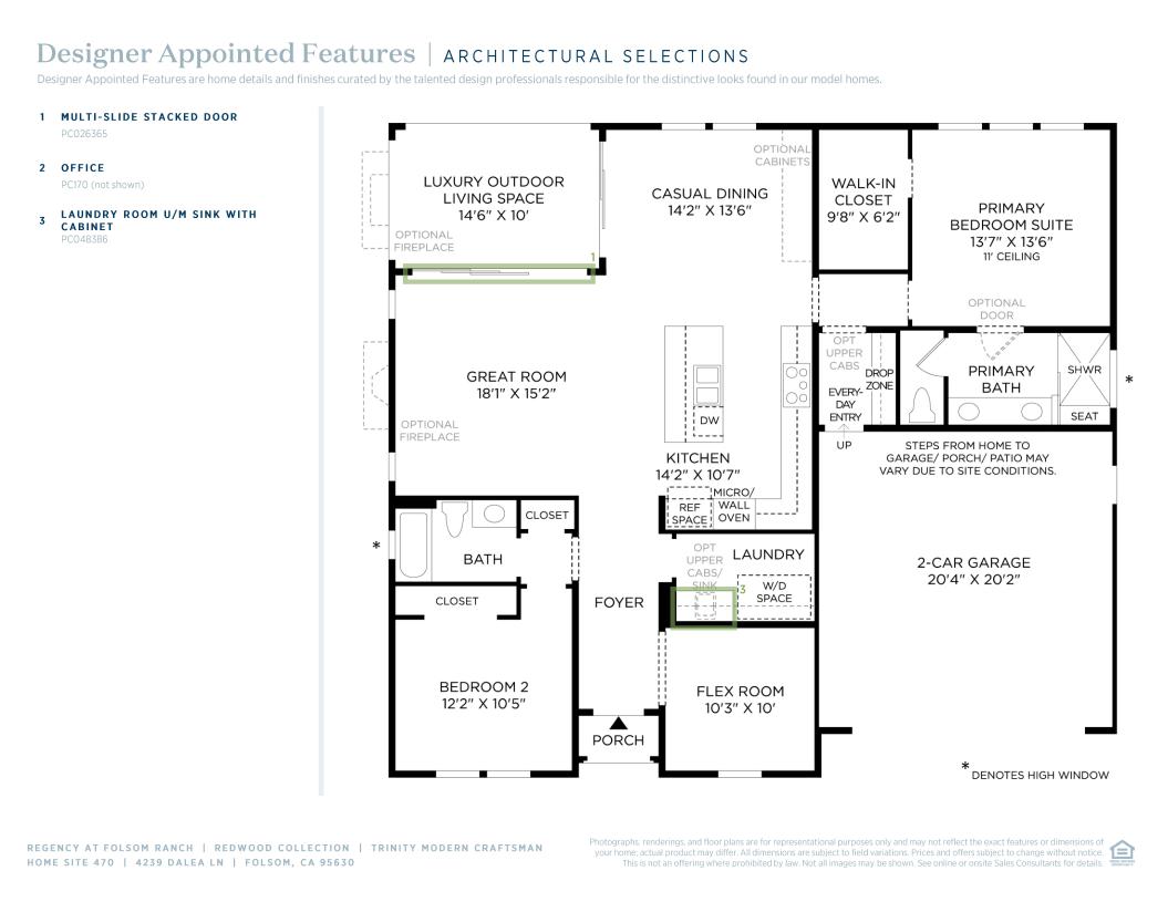 The Trinity's inviting covered porch and welcoming foyer flow past the generous flex room, offering views to the spacious great room, bright casual dining area, and desirable luxury outdoor living space beyond. The well-appointed kitchen is complete with a large center island with breakfast bar, plenty of counter and cabinet space, and roomy pantry. The impressive primary bedroom suite is highlighted by an enormous walk-in closet and spa-like primary bath with dual-sink vanity, large luxe shower with seat, and private water closet. The secondary bedroom features an ample closet and shared hall bath. Additional highlights include a convenient everyday entry and drop zone, centrally located laundry, and additional storage.