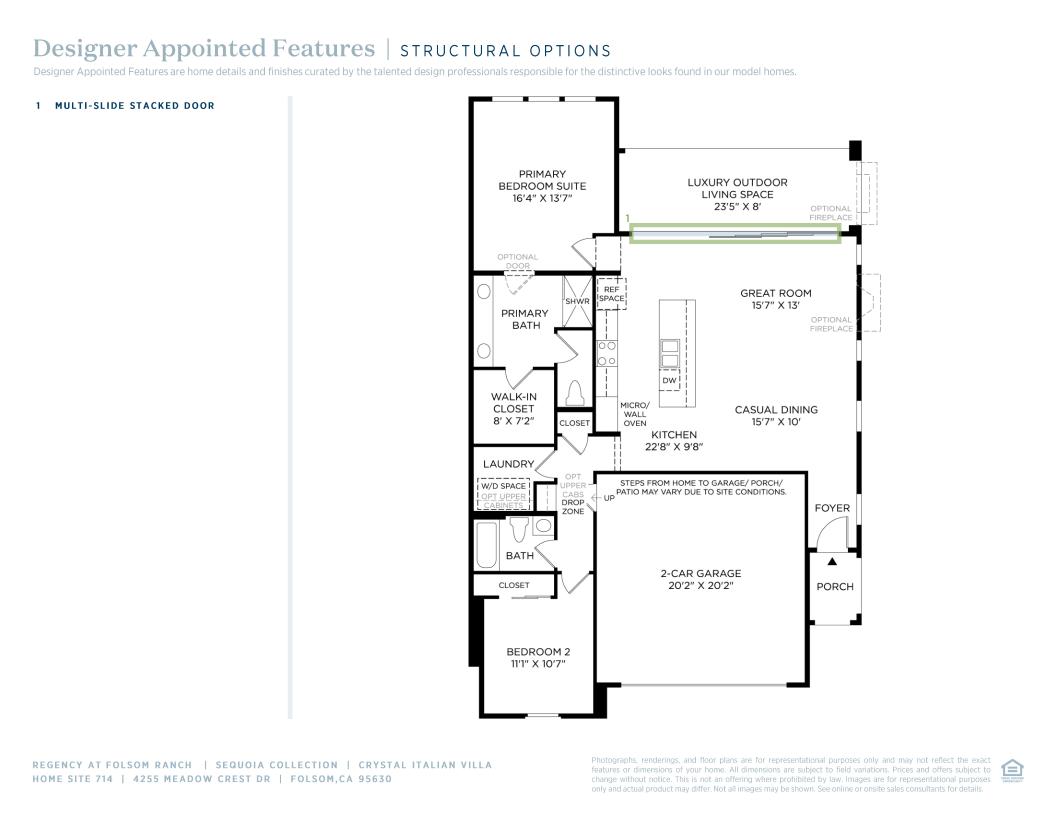 • Expansive 20' x 8' multi-stacking doors open the great room to outdoor living, creating a light-filled space ideal for both everyday comfort and effortless entertaining