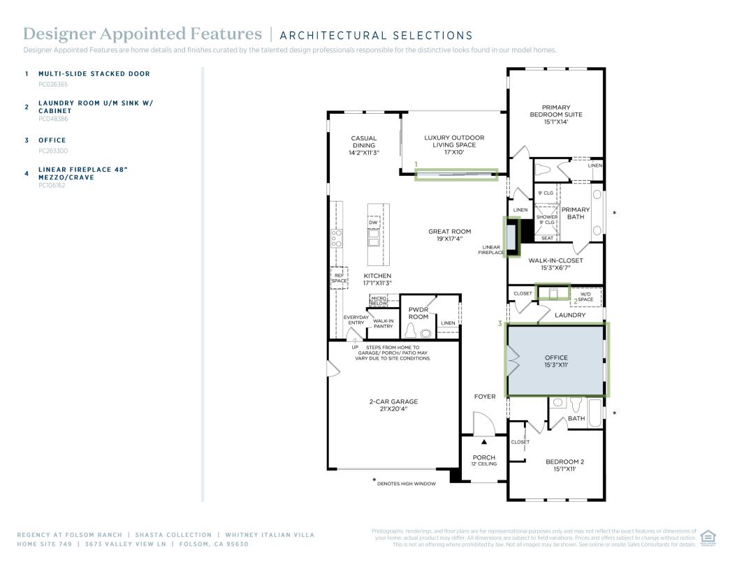 This beautiful home was crafted for the way you live. Perfectly positioned on a northeast-facing corner home site, this home is rich with designer touches and thoughtful upgrades. The great room features soaring ceilings, a dramatic 48” Mezzo fireplace, and a Darlinghurst precast mantel beam, all framed by a 12'x8' multi-stacking glass door that opens to the covered outdoor living space, ideal for effortless indoor-outdoor entertaining. The chef-inspired kitchen includes a JennAir appliance package with a 48” gas range, a large central island, and abundant cabinetry. The expansive primary suite offers a spa-like bath with dual vanities, an oversized shower with a built-in seat, and a generous walk-in closet. Additional highlights include an upgraded laundry room with sink and cabinetry, a secluded secondary bedroom with en-suite bath, and a private office with double doors.
