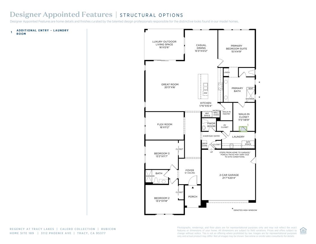 An expansive great room and casual dining area are the focal point of the Rubicon's main living space, central to the charming foyer and large luxury outdoor living space beyond. The well-designed kitchen is enhanced by a large center island with breakfast bar, plenty of counter and cabinet space, and a roomy walk-in pantry. Complementing the magnificent primary bedroom suite are a large walk-in closet and a marvelous primary bath with a dual-sink vanity, a large luxe shower with seat, linen storage, and a private water closet. Secondary bedrooms feature sizable closets and shared hall bath. Additional highlights include a spacious flex room, a convenient powder room, an everyday entry with drop zone, a centrally located laundry, and plenty of additional storage.