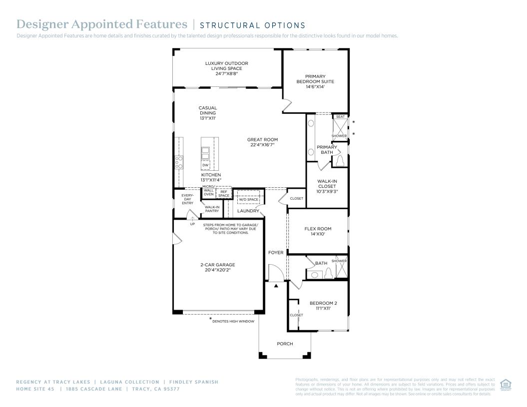 An alluring foyer hallway flows past a spacious flex room to the Findley's soaring great room, open to the luxury outdoor living space. The well-designed kitchen offers a large center island with breakfast bar, plenty of counter and cabinet space, and roomy walk-in pantry. Highlighting the gorgeous primary bedroom suite are a generous walk-in closet and an appealing primary bath with a dual-sink vanity, a large luxe shower with seat, and a private water closet. The secondary bedroom features an ample closet and shared hall bath. Additional highlights include a convenient everyday entry with drop zone, a centrally located laundry, and additional storage throughout.