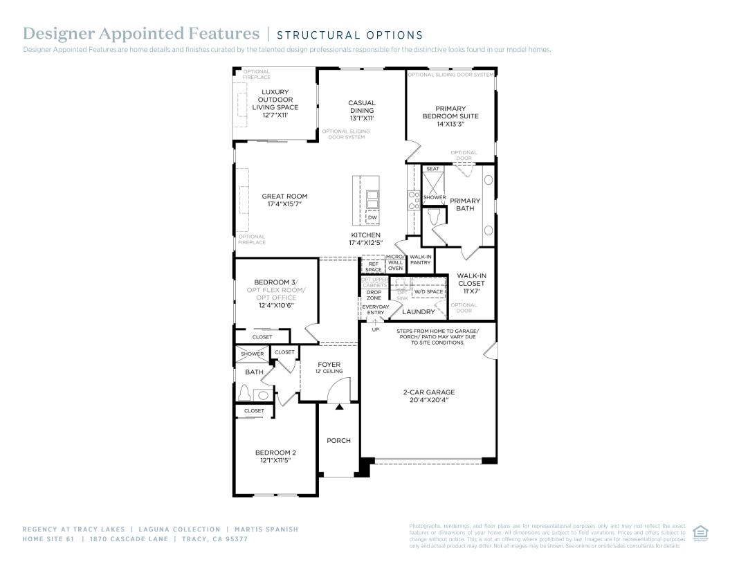 The Martis' impressive open concept great room and casual dining area are accessible to the large rear luxury outdoor living space and an airy flex room, via the elegant foyer. Enhancing the well-appointed kitchen are a large center island with breakfast bar, plenty of counter and cabinet space, and a sizable pantry. The stunning primary bedroom suite is complete with an impressive walk-in closet and a primary bath with dual vanities, a large luxe shower with seat, and a private water closet. The secondary bedroom features a roomy closet and shared hall bath. Additional highlights include a convenient everyday entry with drop zone, an easily-accessible laundry, and plenty of additional storage.