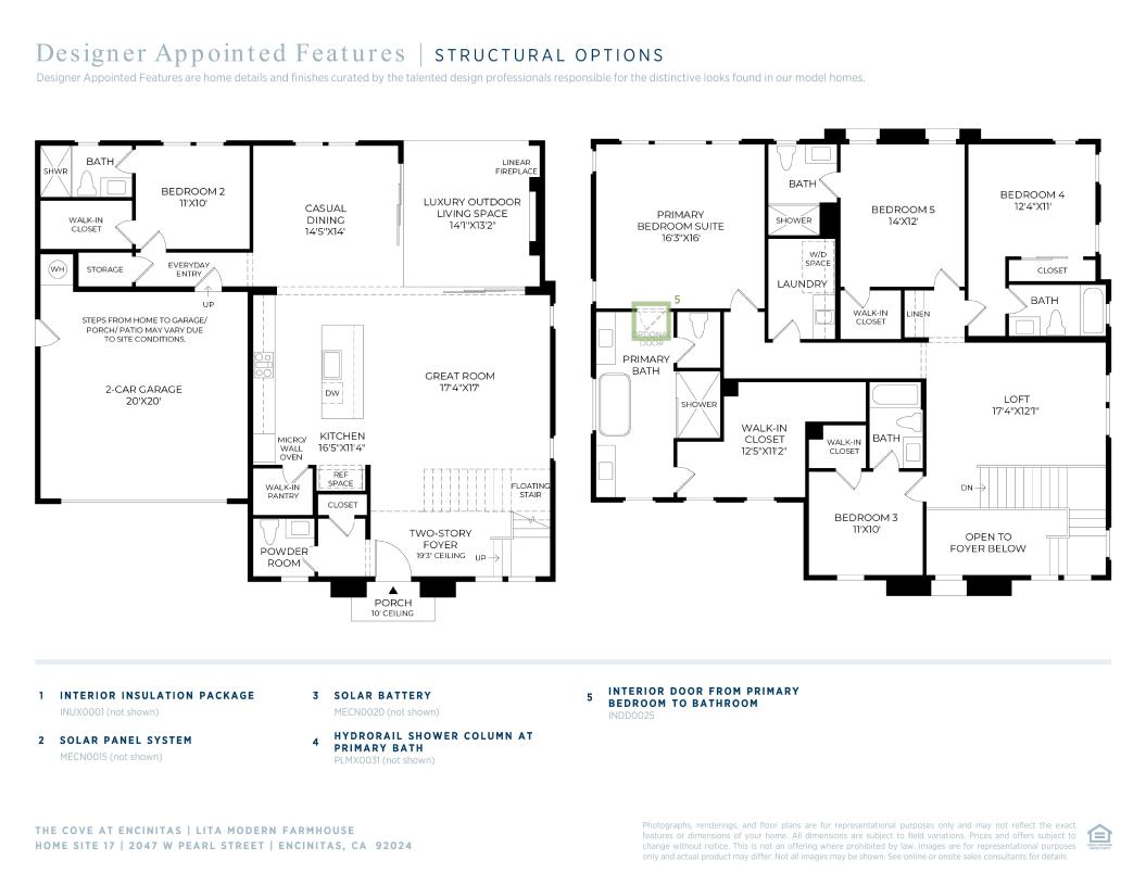 This brand-new all-electric home offers 3,120 square feet, 5 bedrooms, 5.5 baths, and a second-floor loft. The striking two-story foyer and floating stairs lead to an expansive great room just beyond. The first floor offers a bedroom suite complete with a private bath and walk-in closet. A large loft space on the second floor creates a space that is perfect for the way you live. The great room brings the outdoors inside with the 90-degree corner multi-slide door opening to a spacious covered outdoor living space with a linear fireplace. Other highlights of this home include a solar panel system, solar battery, and enhanced recessed lighting and low voltage package.