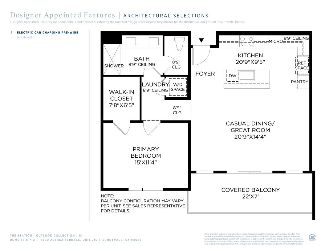 The 1D offers smart living in a thoughtfully designed single-level layout. A cozy foyer opens to a bright main living area where the kitchen, casual dining, and great room come together in an open-concept design. The kitchen includes a center island, L-shaped counter, and pantry—providing both functionality and a central spot for gathering. The spacious primary bedroom features a generous walk-in closet and sits near a well-appointed hall bath with dual-sink vanity, shower, and private water closet. A dedicated laundry area adds everyday ease. Sliding doors off the great room lead to a covered balcony—perfect for relaxing or entertaining outdoors.