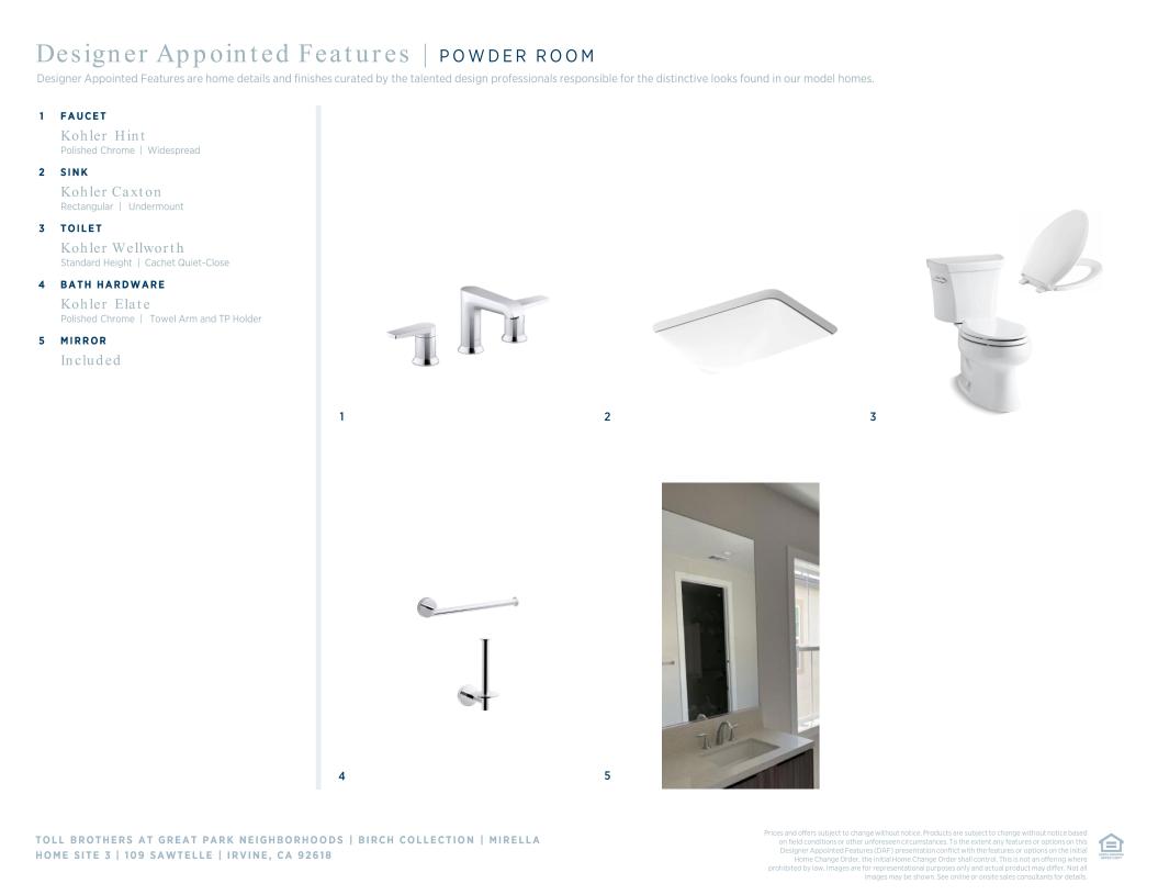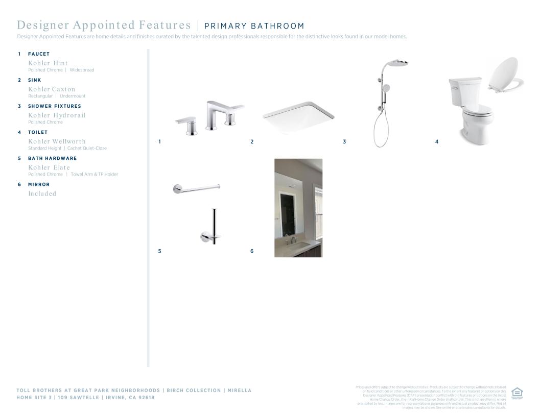 Toll Brothers Designer Appointed Collections are professionally curated selections of fixtures and finishes that come together to create a cohesive, distinctive look for a home.  Learn More