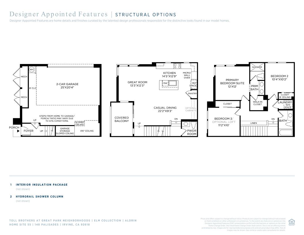 The Aldrin offers three levels of well-planned living with modern appeal. Enter from the first-floor foyer or two-car garage which leads to an open main level on the second floor where the great room and casual dining area connect to a well-appointed kitchen with a center island and wraparound counters. A covered balcony extends the space outdoors, perfect for fresh-air dining. On the third floor, the private primary suite features a walk-in closet and a luxurious bath with dual-sink vanity, a spacious shower, and a private water closet. Two secondary bedrooms share a hall bath, offering privacy and comfort for family or guests. Additional highlights include a main-level powder room and third-floor laundry for everyday ease.
