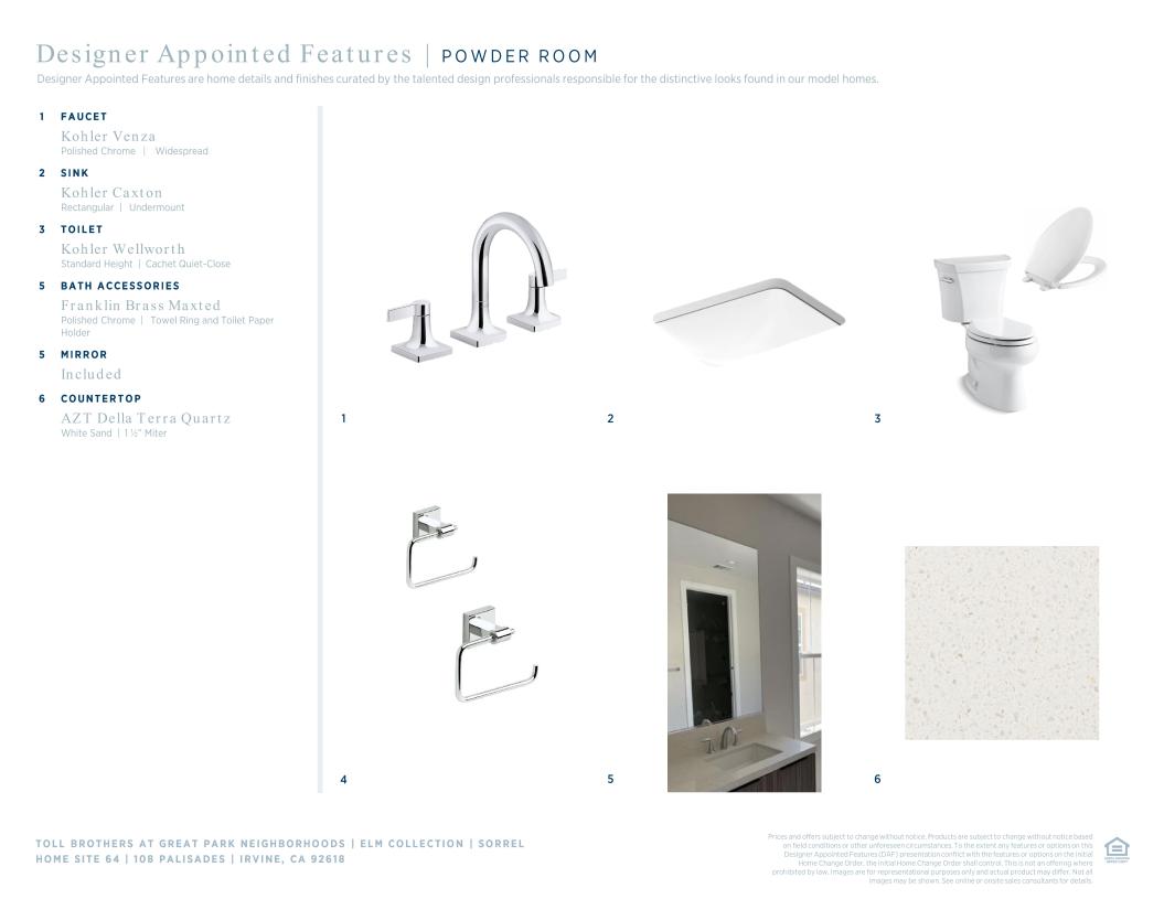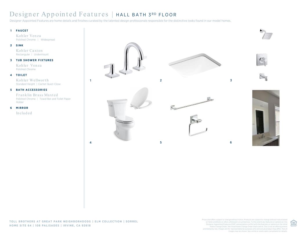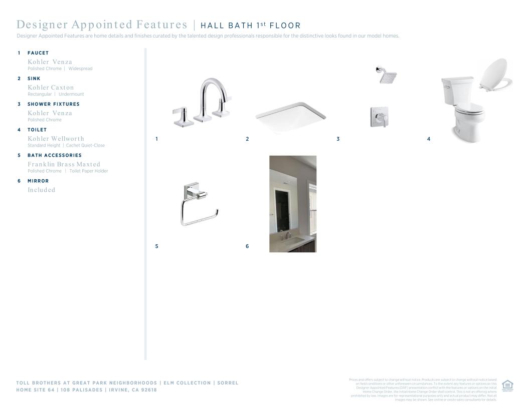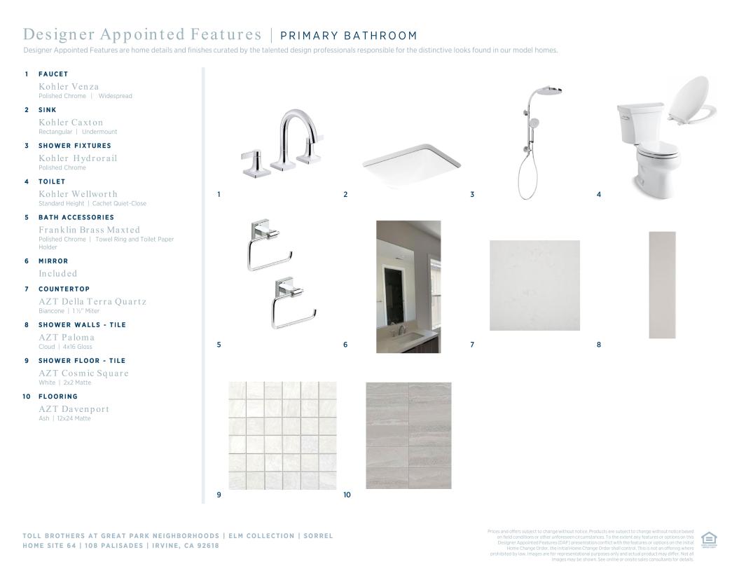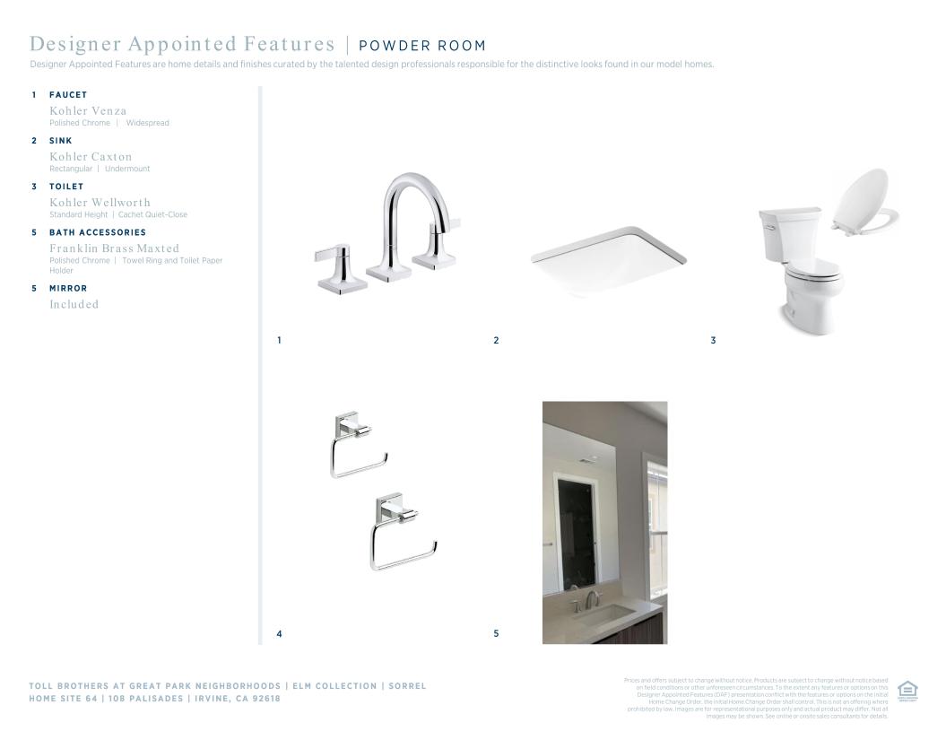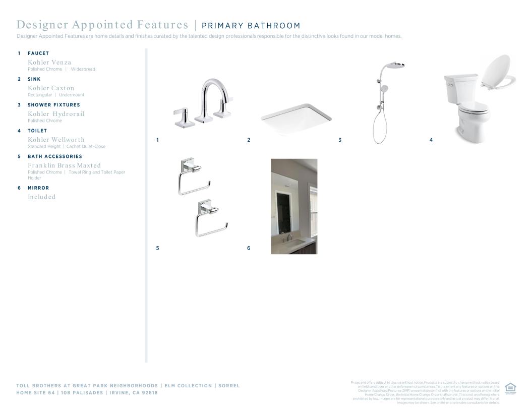 Toll Brothers Designer Appointed Collections are professionally curated selections of fixtures and finishes that come together to create a cohesive, distinctive look for a home. Learn More