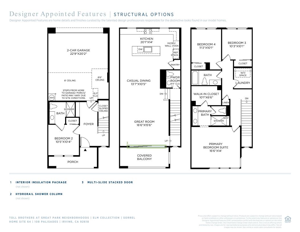 The Sorrel home design is an exquisite three-story townhome that balances comfort and style with thoughtful open floor plan. Upon entry, a welcoming foyer leads to a spacious secondary bedroom with access to a full hall bath, perfect for guests or extended stays. On the second floor, the great room and casual dining area flow into a well-appointed kitchen featuring a center island, L-shaped counter, and pantry. A covered balcony off the great room enhances the living space, ideal for outdoor dining or relaxation. The third floor hosts a serene primary suite with a generous walk-in closet and a luxurious bath complete with a dual-sink vanity, large shower with seat, and a private water closet. Two additional secondary bedrooms share a full hall bath and are conveniently located near the laundry area. Additional highlights include a main-level powder room and a two-car garage.