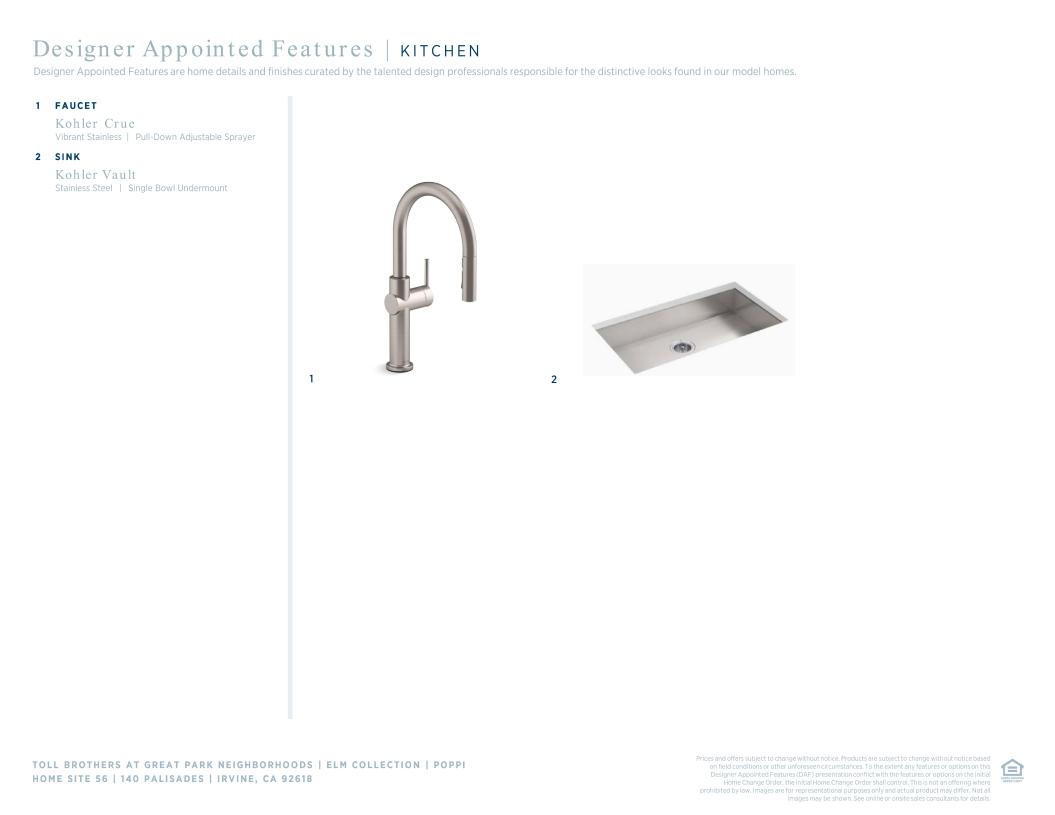 Toll Brothers Designer Appointed Collections are professionally curated selections of fixtures and finishes that come together to create a cohesive, distinctive look for a home. Learn More