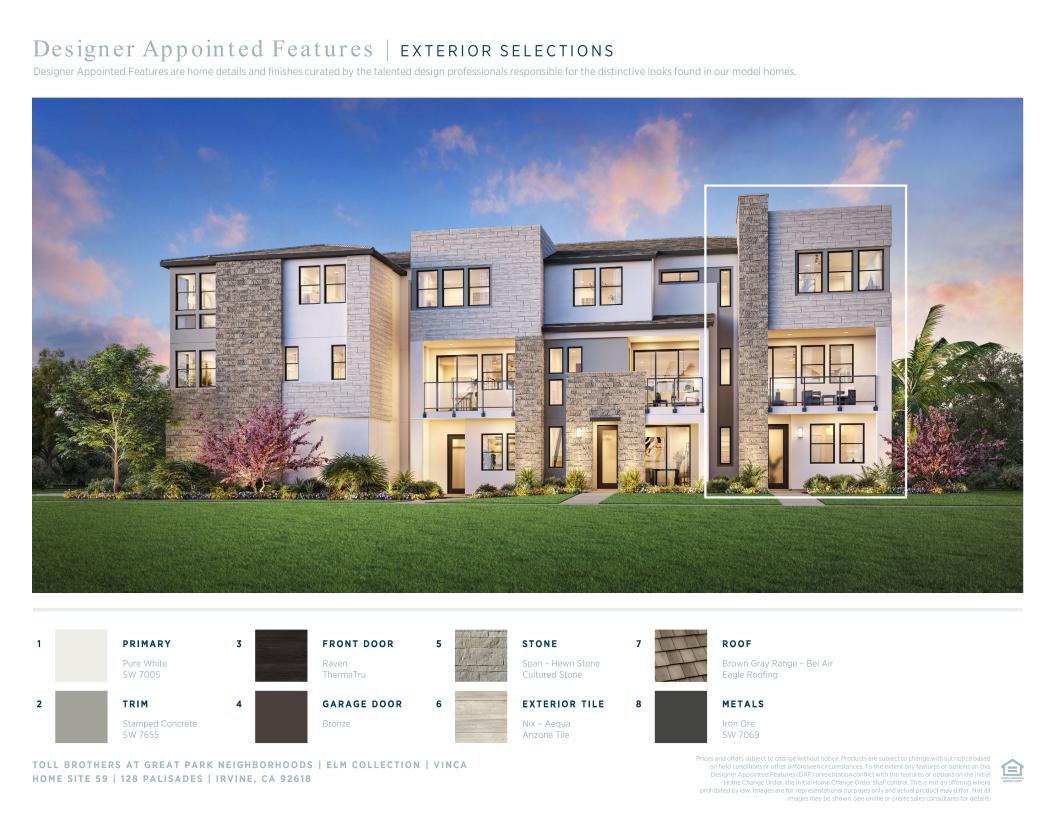 Toll Brothers Designer Appointed Collections are professionally curated selections of fixtures and finishes that come together to create a cohesive, distinctive look for a home. Learn More