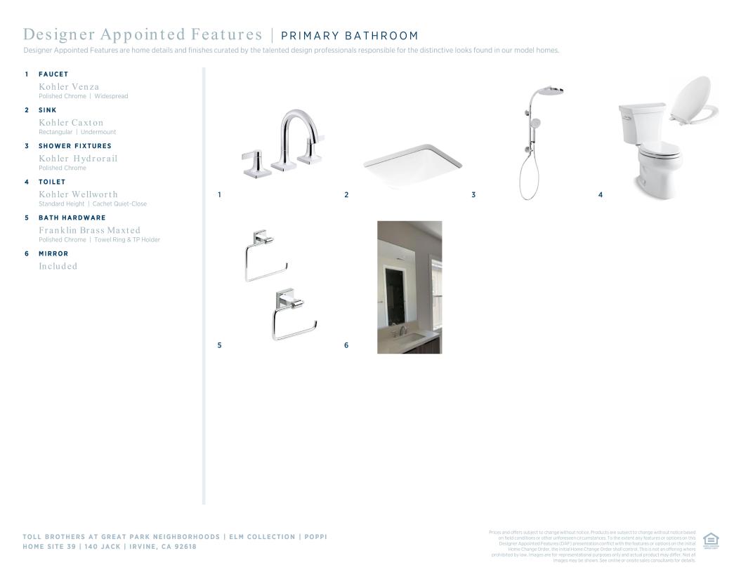 Toll Brothers Designer Appointed Collections are professionally curated selections of fixtures and finishes that come together to create a cohesive, distinctive look for a home. Learn More