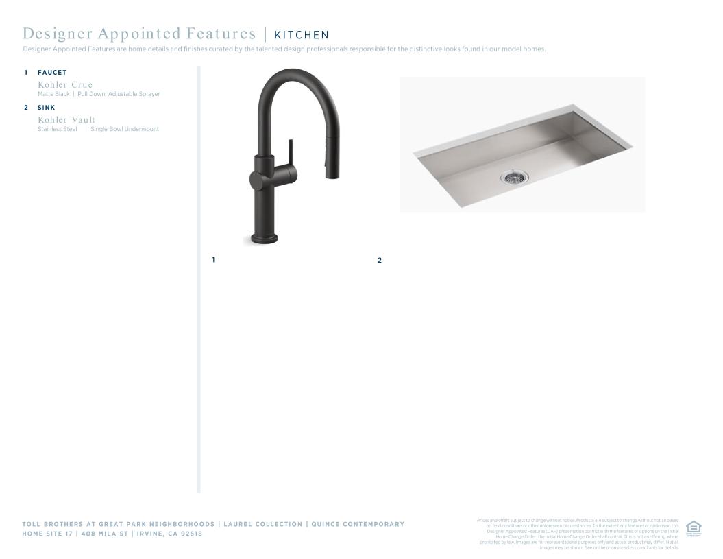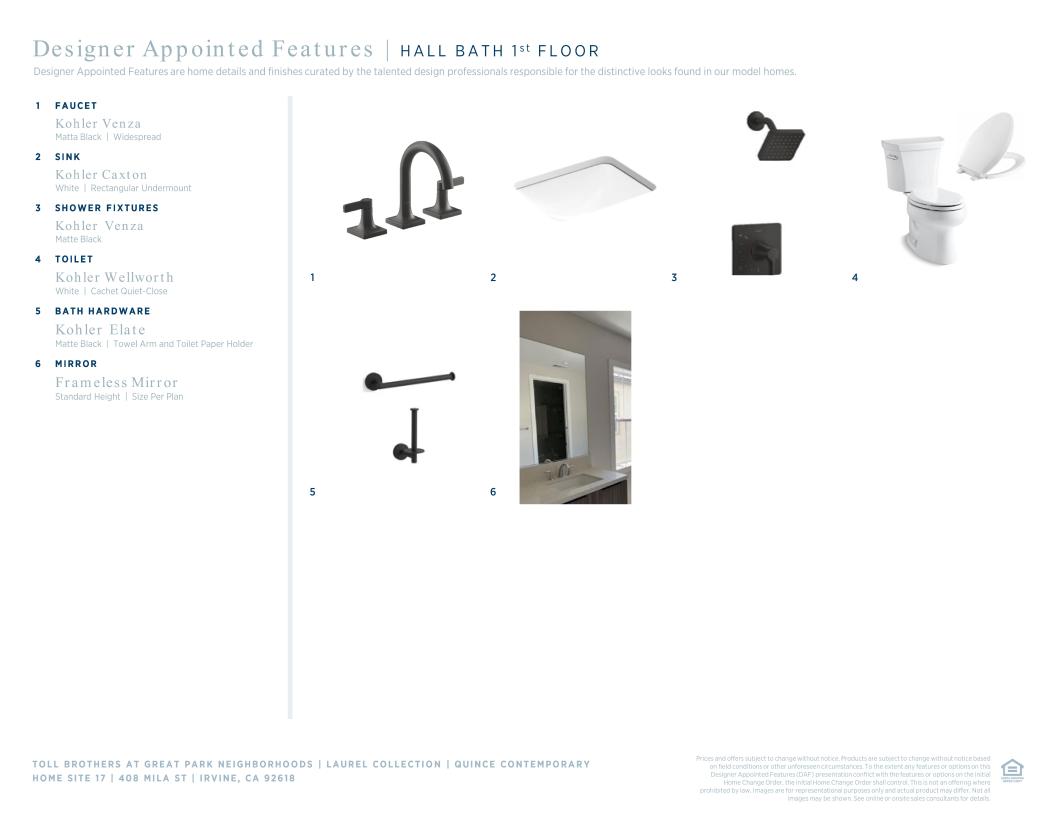 Toll Brothers Designer Appointed Collections are professionally curated selections of fixtures and finishes that come together to create a cohesive, distinctive look for a home. Learn More
