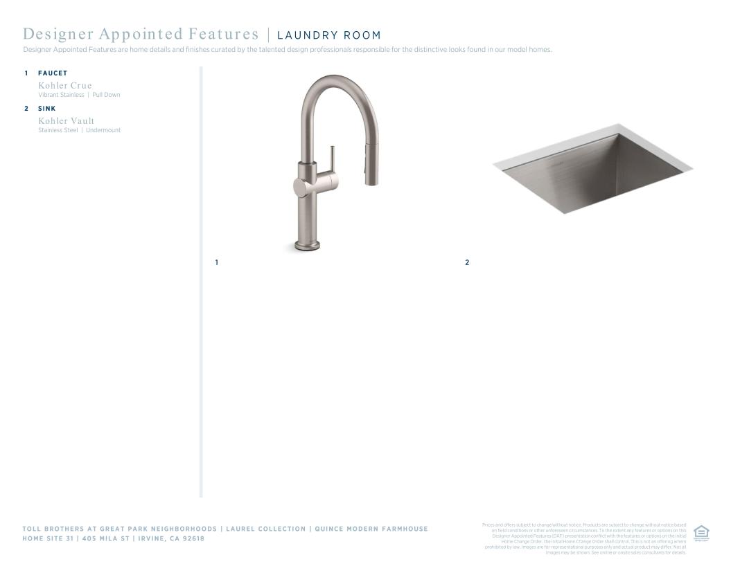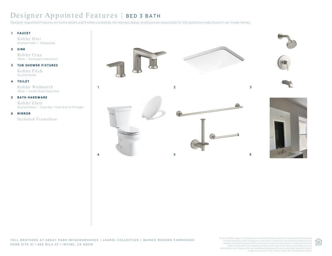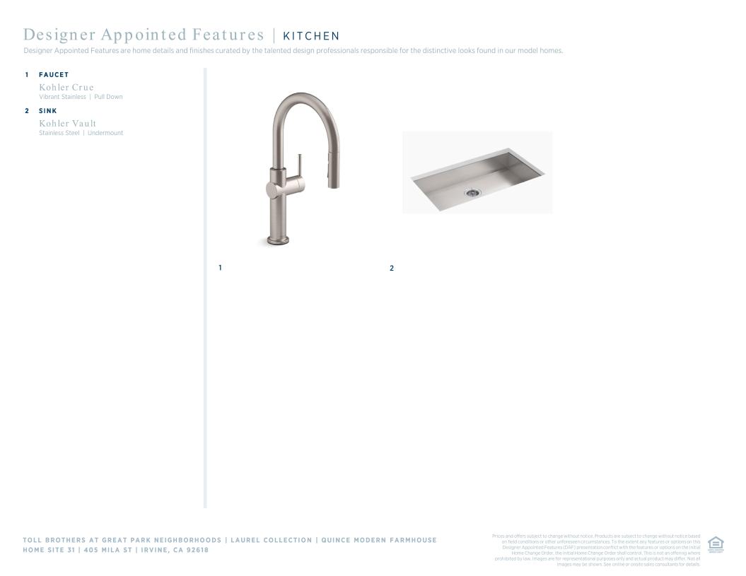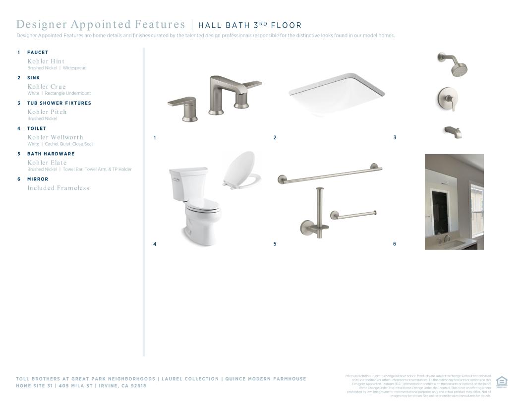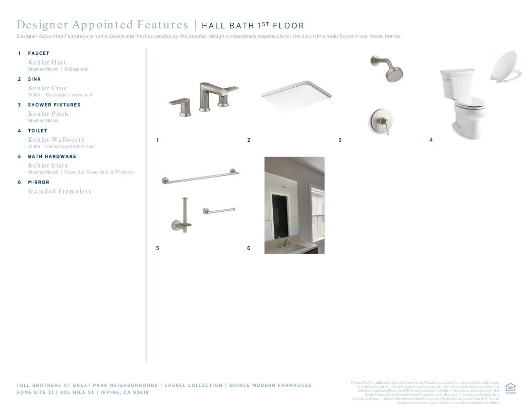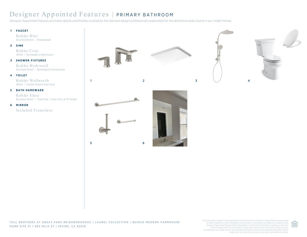 Toll Brothers Designer Appointed Collections are professionally curated selections of fixtures and finishes that come together to create a cohesive, distinctive look for a home. Learn More