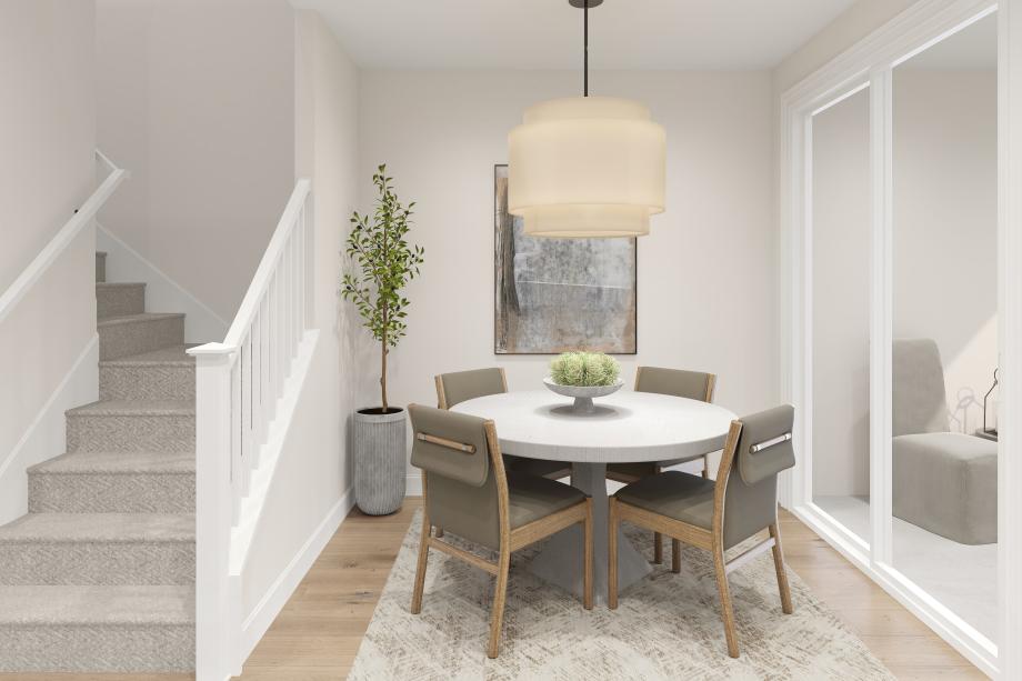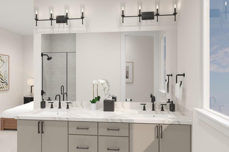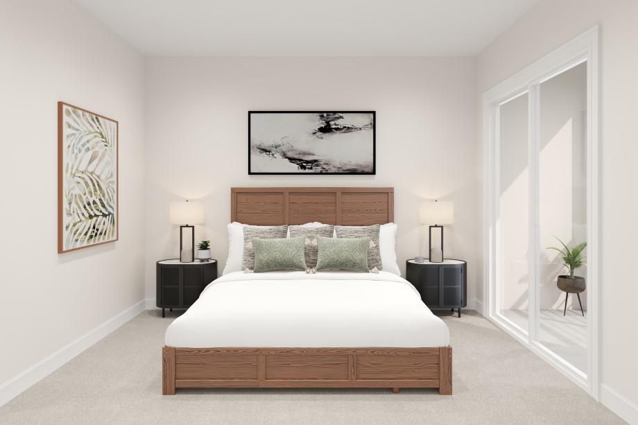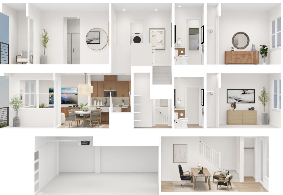 The Sana blends comfort and style across three thoughtfully designed levels. The foyer leads to a spacious first-floor flex room, perfect for work, wellness, or guests. On the second floor, the open-concept main living area connects the great room, kitchen, and casual dining space. The kitchen features a center island and walk-in pantry, while sliding doors open to a covered deck—ideal for outdoor dining or entertaining. A secondary bedroom with access to a full hall bath offers a welcoming space for guests or family. Upstairs, the private primary suite includes a generous walk-in closet and a spa-like bath with dual-sink vanity, a shower with seat, and a private water closet. A covered deck extends the suite outdoors. A secondary bedroom with a private bath, located near the laundry area, completes this well-appointed home.