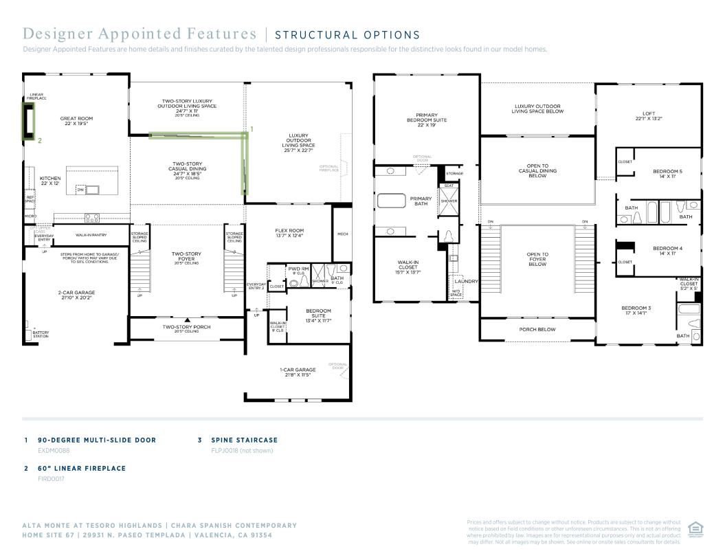 The Chara is the epitome of luxury with it's spacious, open-concept floor plan with elegant features and modern architecture. A soaring two-story foyer and two-story casual dining area overlook the expansive two-story wraparound luxury outdoor living space. The beautiful great room is adjacent to the well-appointed kitchen that features an oversized center island with breakfast bar, plenty of counter and cabinet space, and an ample walk-in pantry. The marvelous primary bedroom suite is highlighted by a generous walk-in closet and a spa-like primary bath with dual vanities, a large soaking tub, luxe shower with seat, and a private water closet. Secondary bedrooms, one with a walk-in closet and two with sizable closets, feature private baths and are central to a spacious loft. Also featured in the Chara is a versatile first-floor bedroom with a walk-in closet and private bath off the foyer, as well as a sizable flex room, convenient second-floor laundry, a powder room, dual everyday entries, a drop zone, and additional storage throughout.