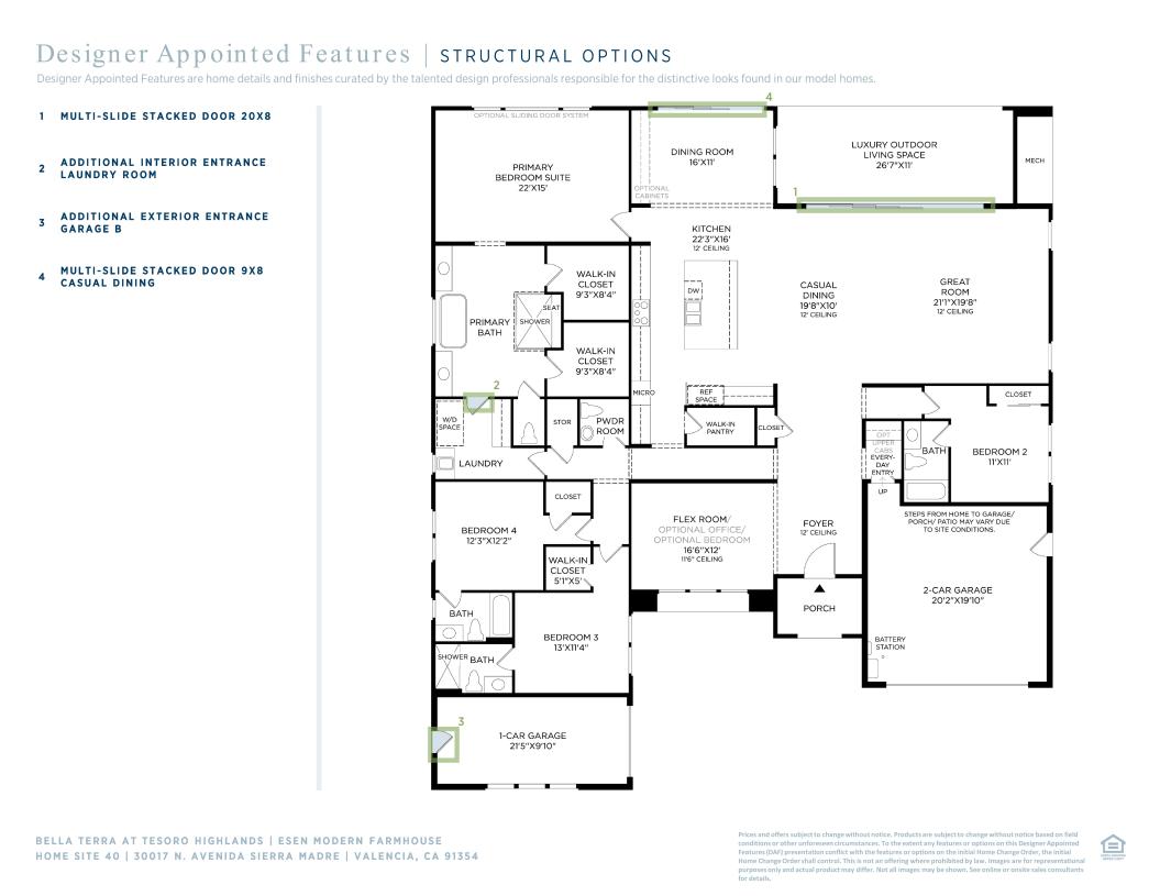 The wonderfully designed Esen features a beautiful blend of elegance and charm. The expansive main living area encompasses a beautiful great room that offers views of the large foyer, a spacious casual dining area, and a luxury outdoor living space. Adjacent to an elegant formal dining room, the well-appointed kitchen is enhanced by an oversized center island with breakfast bar, plenty of counter and cabinet space, as well as a walk-in pantry. The palatial primary bedroom suite is secluded off the kitchen and complemented by dual walk-in closets as well as a magnificent primary bath with dual vanities, a large soaking tub, a luxe shower with a seat, and a private water closet. Secondary bedrooms, one with a walk-in closet and two with roomy closets, feature private baths.