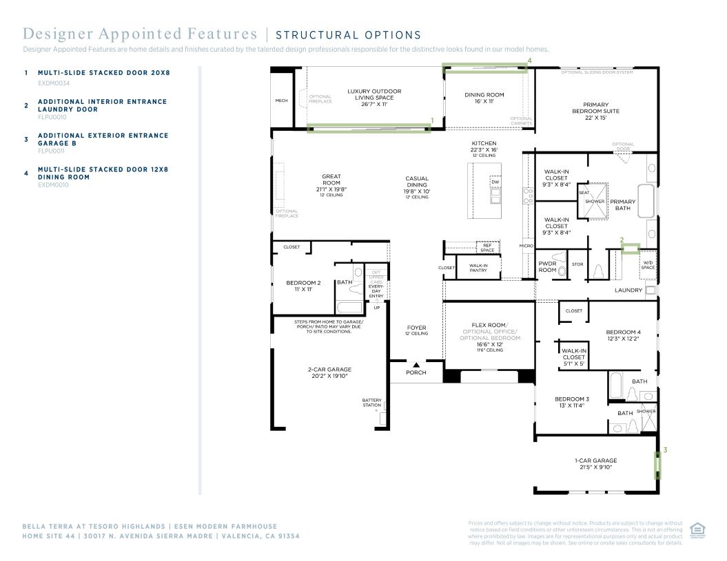 The wonderfully designed Esen features a beautiful blend of elegance and charm. The expansive main living area encompasses a beautiful great room that offers views of the large foyer, a spacious casual dining area, and a luxury outdoor living space. Adjacent to an elegant formal dining room, the well-appointed kitchen is enhanced by an oversized center island with breakfast bar, plenty of counter and cabinet space, as well as a walk-in pantry. The palatial primary bedroom suite is secluded off the kitchen and complemented by dual walk-in closets as well as a magnificent primary bath with dual vanities, a large soaking tub, a luxe shower with a seat, and a private water closet. Secondary bedrooms, one with a walk-in closet and two with roomy closets, feature private baths.