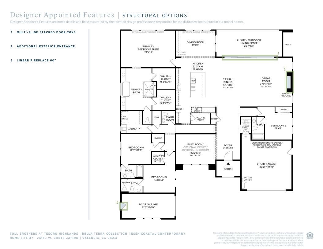 The wonderfully designed Esen features a beautiful blend of elegance and charm. The expansive main living area encompasses a beautiful great room that offers views of the large foyer, a spacious casual dining area, and a luxury outdoor living space. Adjacent to an elegant formal dining room, the well-appointed kitchen is enhanced by an oversized center island with breakfast bar, plenty of counter and cabinet space, as well as a walk-in pantry. The palatial primary bedroom suite is secluded off the kitchen and complemented by dual walk-in closets as well as a magnificent primary bath with dual vanities, a large soaking tub, luxe shower with seat, and a private water closet. Secondary bedrooms, one with a walk-in closet and two with roomy closets, feature private baths. A versatile flex room can be found off the foyer with additional highlights including easily accessible laundry, an everyday entry with drop zone, a powder room, and additional storage throughout.