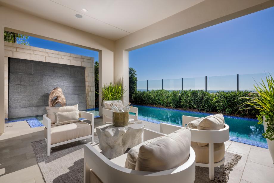 Designed for elevated living, this floor plan features a floating staircase, dramatic high ceilings, and a fireplace in the great room, creating an atmosphere of grandeur. The 9’ high stacking doors seamlessly extend the living space outdoors, offering an effortless indoor-outdoor flow ideal for relaxation and entertaining. A first-floor en-suite bedroom provides exclusivity and comfort, while the spa-inspired primary suite pampers with a Kohler digital performance shower and a spacious retreat. The Wolf appliance-equipped kitchen, with ceiling-height cabinetry, elevates everyday living, ensuring that every detail of this home reflects elite craftsmanship and sophistication.
