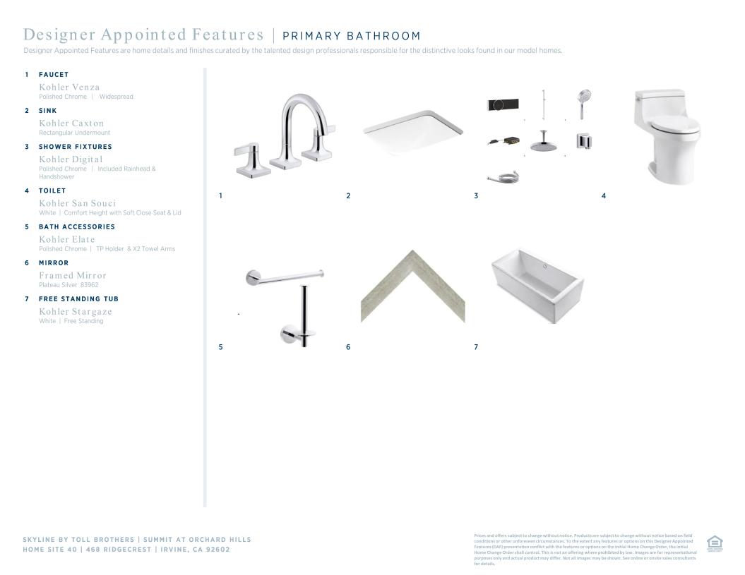 Toll Brothers Designer Appointed Collections are professionally curated selections of fixtures and finishes that come together to create a cohesive, distinctive look for a home. Learn More