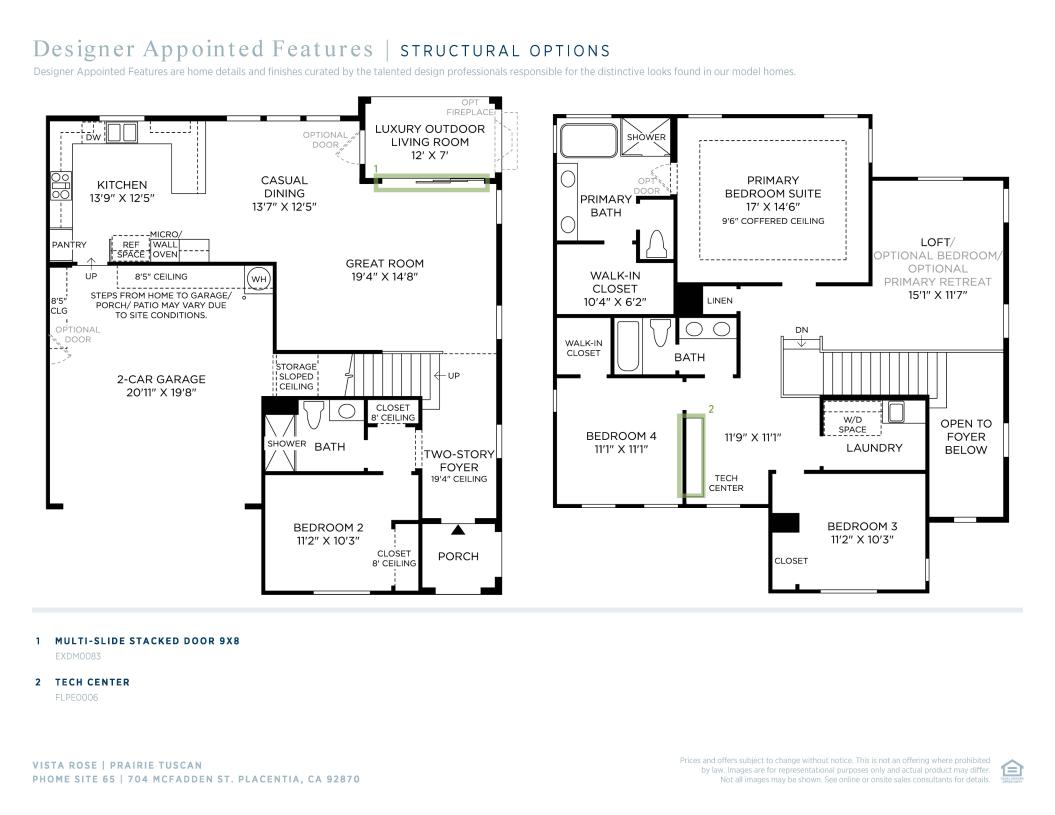 The exquisite Prairie home design features elegantly designed living spaces that are perfect for entertaining and relaxing. An impressive two-story foyer opens onto the great room with access to the luxury outdoor living space. The bright casual dining area is adjacent to the well-designed kitchen, highlighted by an oversized center island with a breakfast bar, wraparound counter and cabinet space, and a roomy pantry. The elegant primary bedroom suite is complemented by a beautiful coffered ceiling, a generous walk-in closet, and a gracious primary bath with a dual-sink vanity, a large soaking tub, a luxe shower, and a private water closet. Secondary bedrooms, one with a walk-in closet, share a hall bath with a separate dual-sink vanity area. Additional highlights include an ample loft, conveniently located second-floor laundry, a desirable first-floor bedroom with a closet and shared hall bath off the foyer, and additional storage throughout.