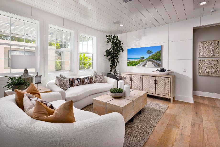 The Lyda's beautiful open-concept two-story floor plan creates the ideal atmosphere for your dream lifestyle. An airy two-story foyer flows into the expansive great room and casual dining area, with views to the beautiful luxury outdoor living space. Defining the well-appointed kitchen are a large center island with breakfast bar, plenty of counter and cabinet space, and a sizable walk-in pantry. The stunning primary bedroom suite is complete with an elegant coffered ceiling, a spacious walk-in closet, and an alluring primary bath with dual-sink vanity, a large soaking tub, luxe shower, and a private water closet. Secondary bedrooms with roomy closets share a hall bath with separate dual-sink vanity area. Additional highlights include a sizable loft, easily-accessible second-floor laundry, a versatile first-floor bedroom with closet and shared hall bath, and plenty of additional storage.