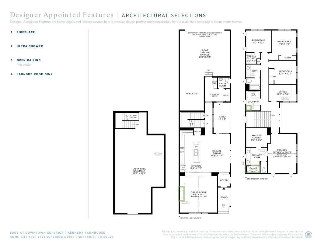 The Kennedy's welcoming foyer open onto the beautiful casual dining area, offering views to the spacious great room. The well-appointed kitchen is complete with a large center island with breakfast bar, plenty of counter and cabinet space, and roomy pantry. The splendid primary bedroom suite is highlighted by an enormous walk-in closet and spa-like primary bath with dual-sink vanity, large luxe shower with seat, and private water closet. Secondary bedrooms feature sizable closets and shared hall bath with separate dual-sink vanity area. Additional highlights include a secluded office, convenient powder room, everyday entry, centrally located laundry, and additional storage.