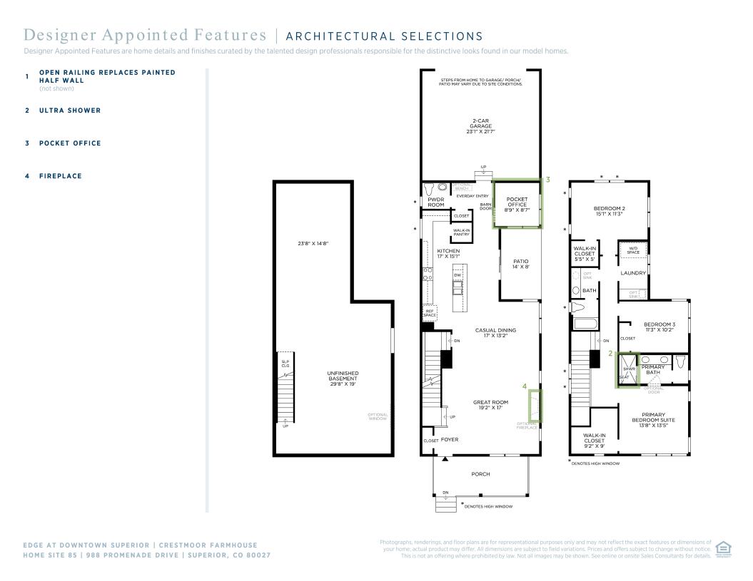 The Crestmoor's welcoming entry flow into the spacious living room and beautiful casual dining area. The well-appointed kitchen is highlighted by a large center island with breakfast bar, plenty of counter and cabinet space, and ample walk-in pantry. The lovely primary bedroom suite is enhanced by a gigantic walk-in closet and spa-like primary bath with dual-sink vanity, luxe shower with seat, and private water closet. Secondary bedrooms feature generous closets and shared hall bath with separate vanity area. Additional highlights include a convenient powder room and everyday entry, centrally located laundry, and additional storage.