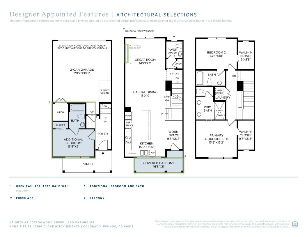 The Leo boasts an appealing front porch and a welcoming foyer that flows into a bright flex room. On the living level, an ideally located kitchen features a large center island with breakfast bar, plenty of cabinet and counter space, and an adjacent workspace. On the third floor, the lovely primary bedroom suite features a generous walk-in closet and a deluxe primary bath with a dual-sink vanity, a luxe shower, and private water closet. A thoughtful secondary bedroom offers a walk-in closet and a private bath. Other highlights include conveniently located laundry on the third floor, a powder room, and plentiful storage.
