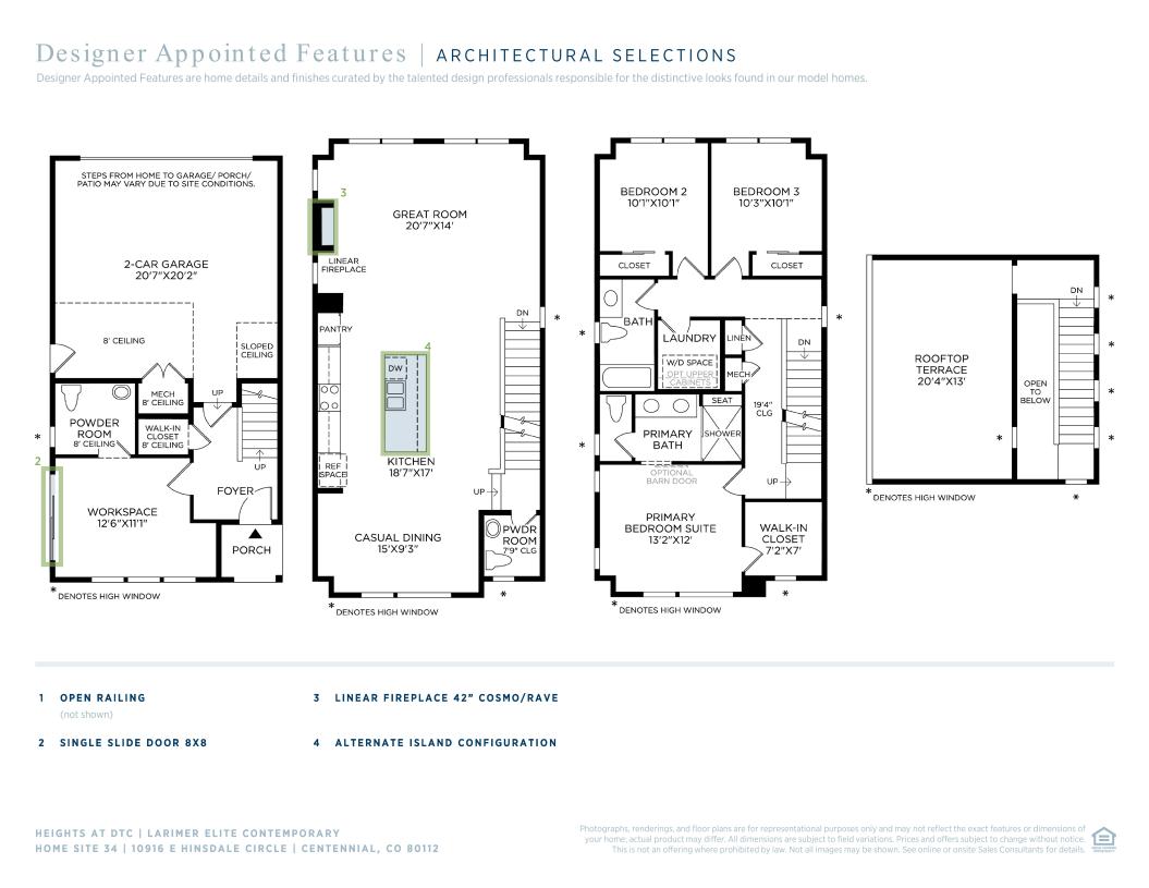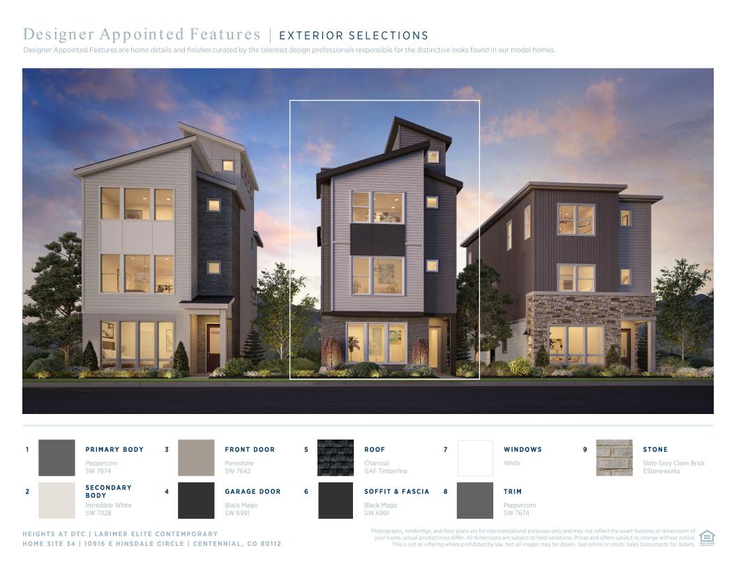 The Prentice Elite offers modern living and versatility. Off the foyer is a workspace, a powder room, and stairs leading to the main level. An open floor plan brings together a casual dining area, an elegant great room, and a well-appointed kitchen featuring an oversized island with breakfast bar and a pantry. On the third floor, the primary bedroom is a haven complete with a walk-in closet and a serene bath offering a dual-sink vanity, a luxe shower with seat, and a private water closet. Two secondary bedrooms provide ample space for family or guests and have access to a full hall bath. On the fourth floor is an impressive rooftop terrace perfect for relaxing, entertaining, and more. Other highlights include an everyday entry, a main-level powder room, bedroom-level laundry, and plentiful storage.