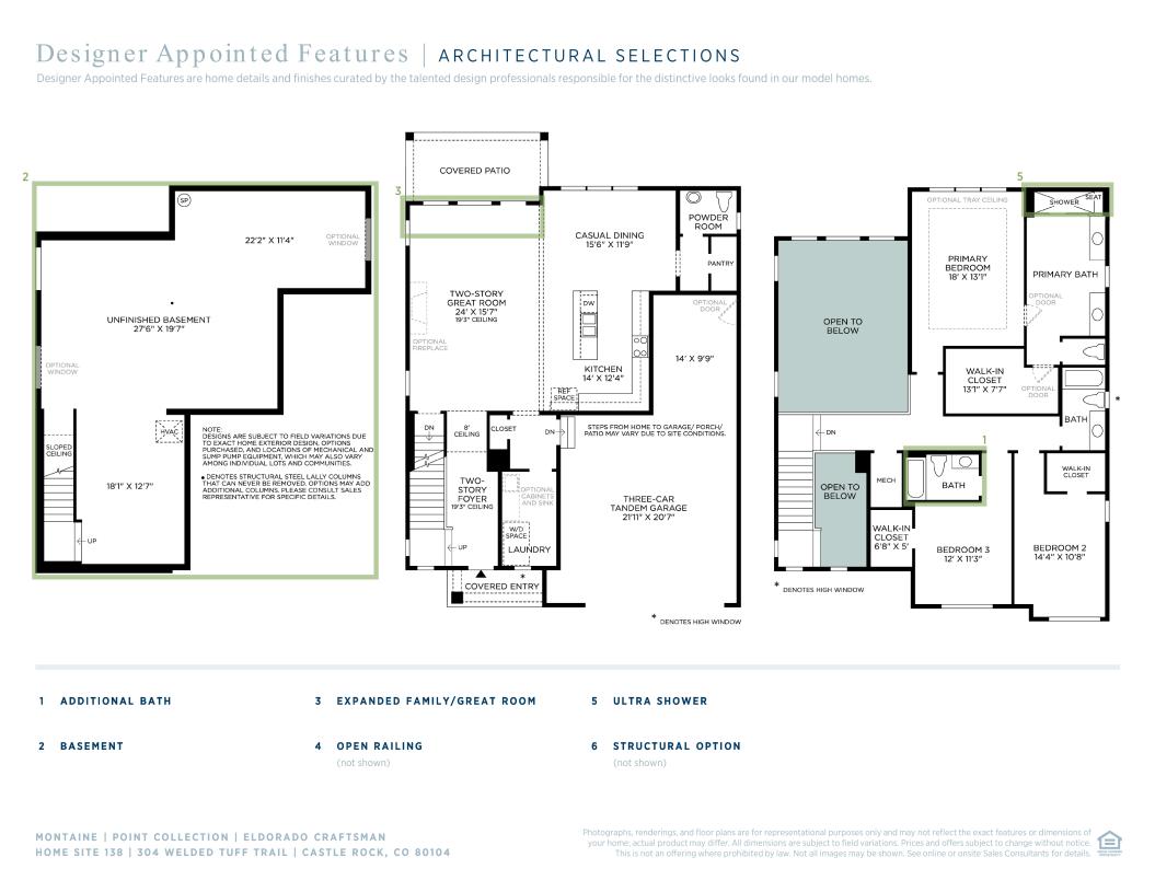 Luxe urban living. The Eldorado's welcoming covered entry and stunning two-story foyer open onto the soaring two-story great room, and views of the desirable covered patio beyond. The well-designed kitchen overlooks a bright casual dining area, and is equipped with a large center island with breakfast bar, plenty of counter and cabinet space, and ample pantry. The impressive primary bedroom suite is enhanced by a massive walk-in closet and spa-like primary bath with dual vanities, large glass-enclosed shower with seat, and private water closet. Secondary bedrooms feature walk-in closets and shared full hall bath. Additional highlights include a convenient powder room, centrally located laundry, and additional storage throughout.