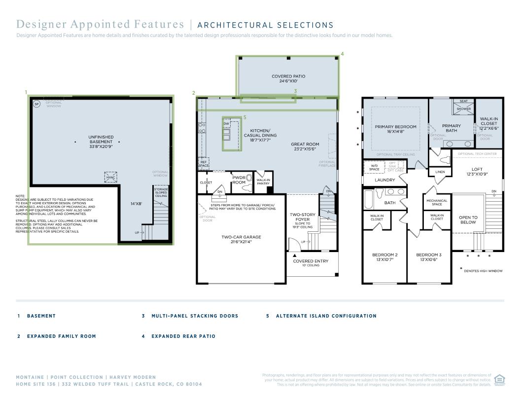 A touch of modern luxe. The Harvey's welcoming covered entry flows into the impressive two-story foyer, revealing the charming turned stairs and views of the expansive great room and desirable covered patio beyond. The well-designed kitchen overlooks a bright casual dining area, and is equipped with a large center island with breakfast bar, plenty of counter and cabinet space, and sizable walk-in pantry. The splendid primary bedroom suite is enhanced by a massive walk-in closet and spa-like primary bath with dual-sink vanity, large luxe glass-enclosed shower with seat, and private water closet. Secondary bedrooms feature walk-in closets and shared full hall bath. Additional highlights include a convenient powder room, centrally located laundry, and additional storage.