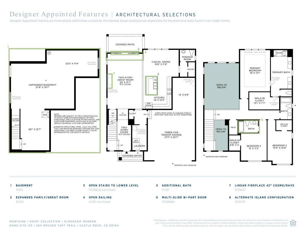 Luxe urban living. The Eldorado's welcoming covered entry and stunning two-story foyer open onto the soaring two-story great room, and views of the desirable covered patio beyond. The well-designed kitchen overlooks a bright casual dining area, and is equipped with a large center island with breakfast bar, plenty of counter and cabinet space, and ample pantry. The impressive primary bedroom suite is enhanced by a massive walk-in closet and spa-like primary bath with dual vanities, large glass-enclosed shower with seat, and private water closet. Secondary bedrooms feature walk-in closets and shared full hall bath. Additional highlights include a convenient powder room, centrally located laundry, and additional storage throughout.