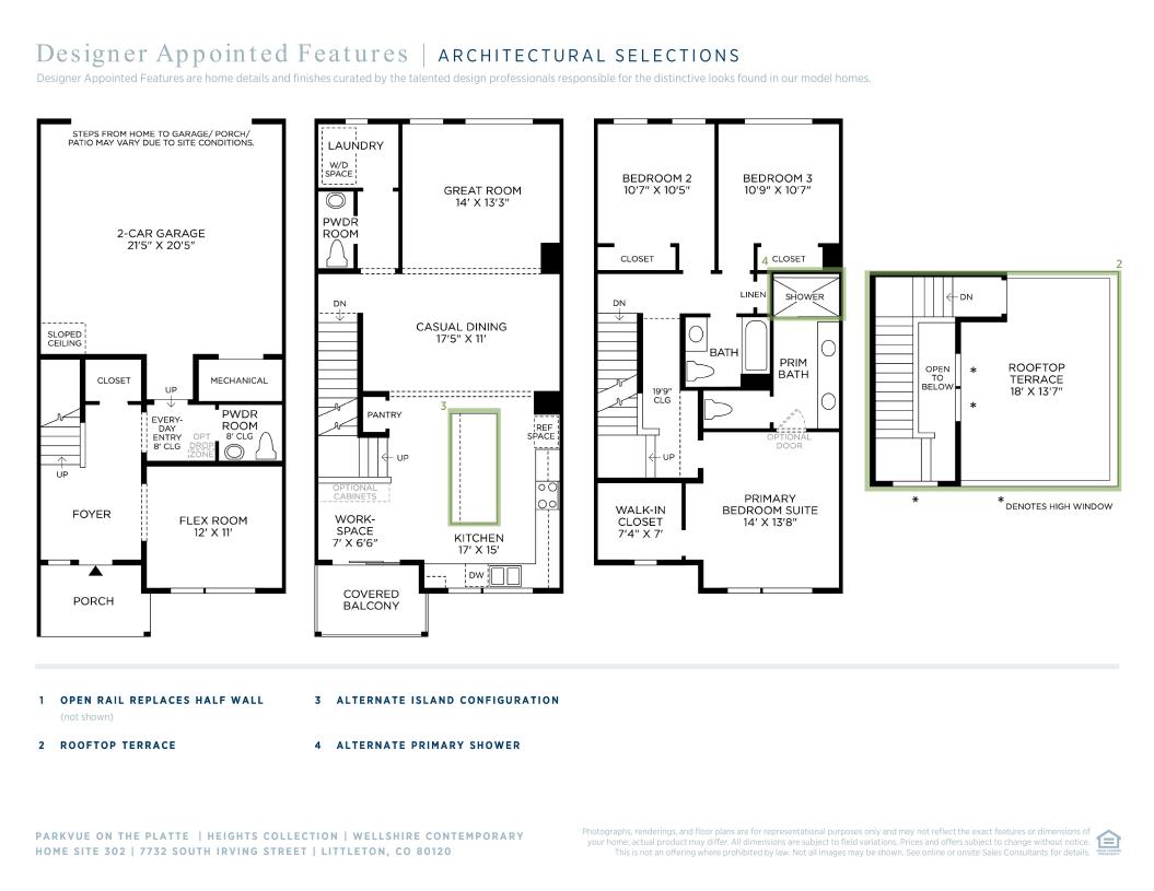 Deluxe urban family living. The Wellshire's welcoming covered entry and foyer reveal the inviting stairs to the second floor living level, opening to views of the bright great room and casual dining area. The well-designed kitchen overlooks a sunny work space with access to the desirable front covered balcony and is equipped with a large center island with breakfast bar, plenty of counter and cabinet space, and ample pantry. On the third floor, the marvelous primary bedroom suite is enhanced by a generous walk-in closet and spa-like primary bath with dual-sink vanity, luxe glass-enclosed shower with seat, and private water closet. Secondary bedrooms feature roomy closets and shared full hall bath. Additional highlights include a secluded flex room on the first floor, convenient powder room and centrally located laundry on the second floor, and additional storage throughout.