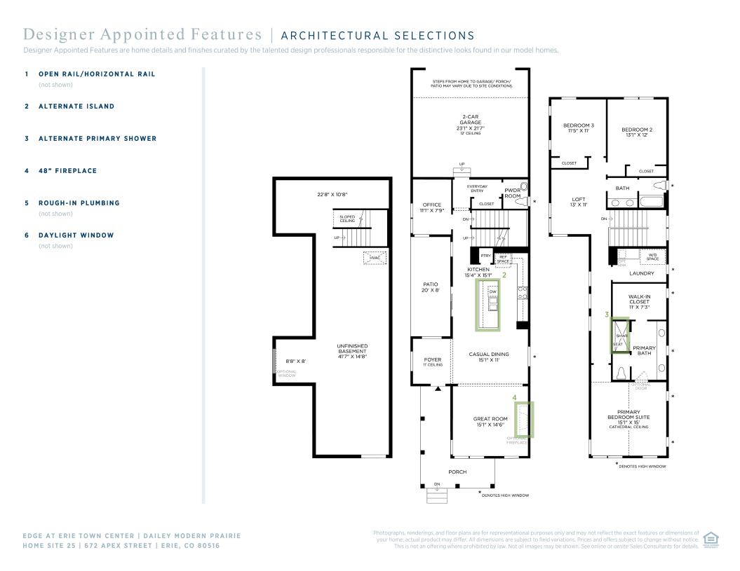 The Dailey's inviting foyer reveal the spacious great room and lovely casual dining area. The well-designed kitchen is enhanced by a large center island with breakfast bar, plenty of counter and cabinet space, and sizable pantry. The gorgeous primary bedroom suite is complete with a massive walk-in closet and spa-like primary bath with dual vanities, luxe shower with seat, and private water closet. Central to a generous loft, secondary bedrooms feature ample closets and shared hall bath with separate vanity area. Additional highlights include a secluded office, convenient powder room, thoughtful mud room, centrally located laundry, and additional storage.